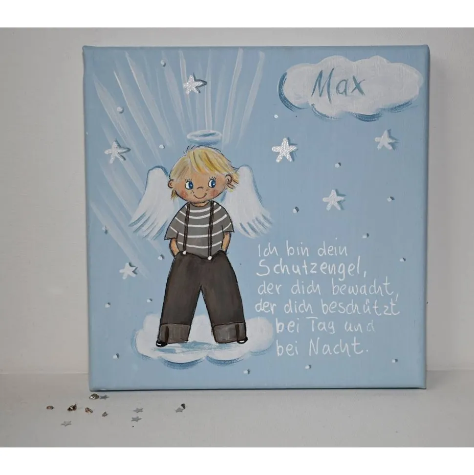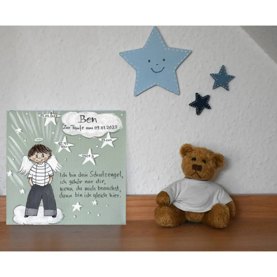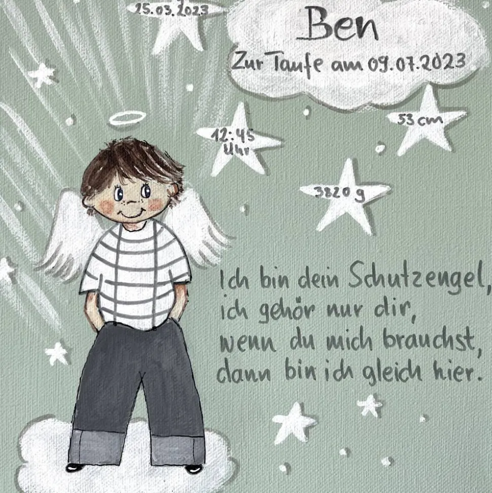 Suchen Sie ein einzigartiges Taufgeschenk für einen Jungen? Dieses handgemalte Schutzengelbild – ist ein bezauberndes Geschenk, das Herzen berührt! 🙂