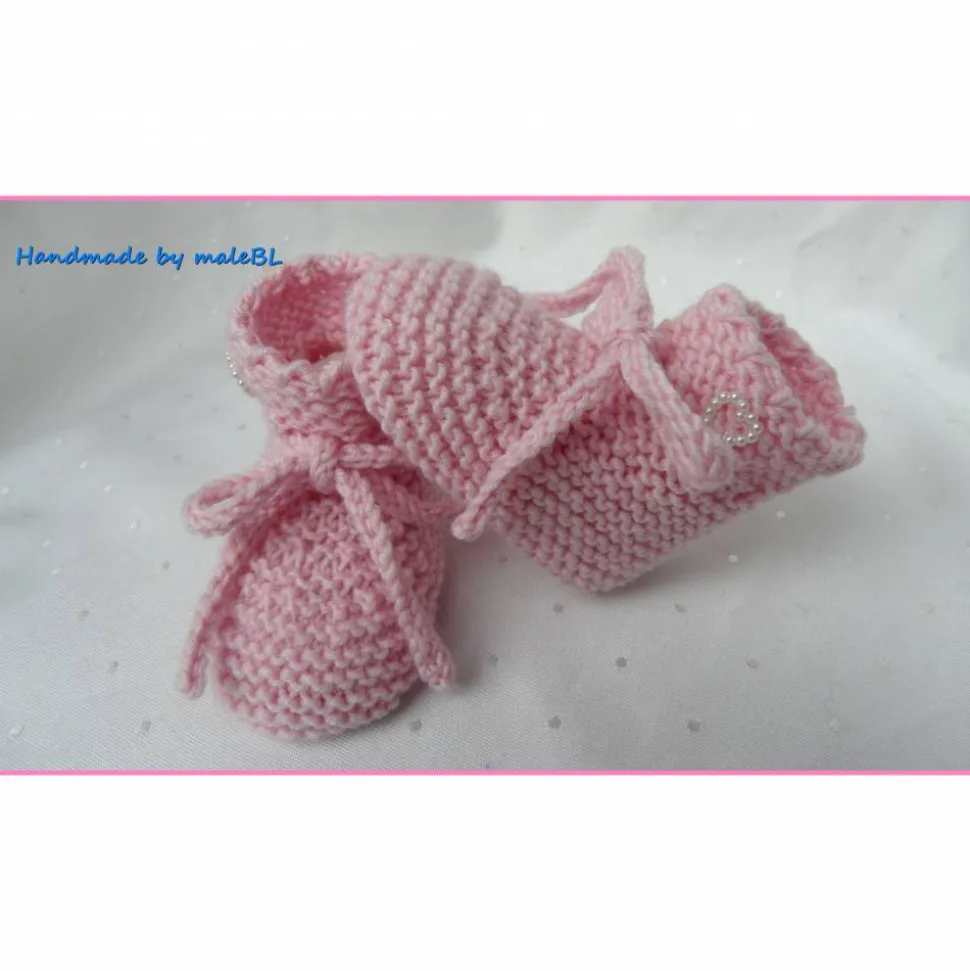Handgestrickte rosa Babyschuhe aus Merinowolle – Neugeborenenschuhe zum Binden
