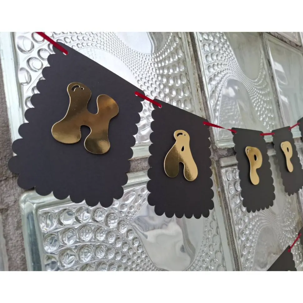Happy- Birthday Girlande – Handgemacht mit 3D Effekt und Spiegelglanz.