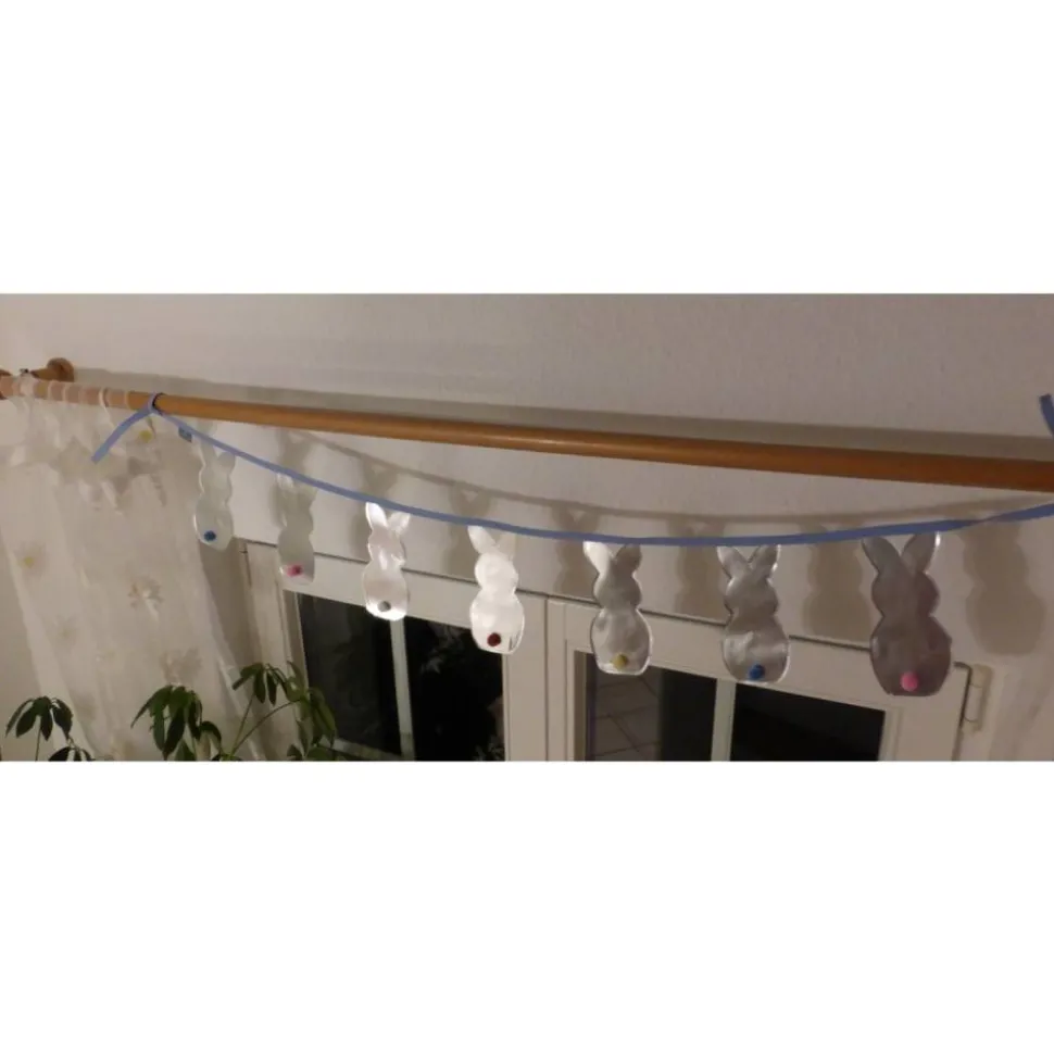 Nicht nur zur Osterzeit; für einen Hasen/Kaninchen-Liebhaber ist diese Wimpelkette das ganze Jahr über eine glänzende Deko für draußen oder drinnen, zur Gartenparty oder den Kindergeburtstag.