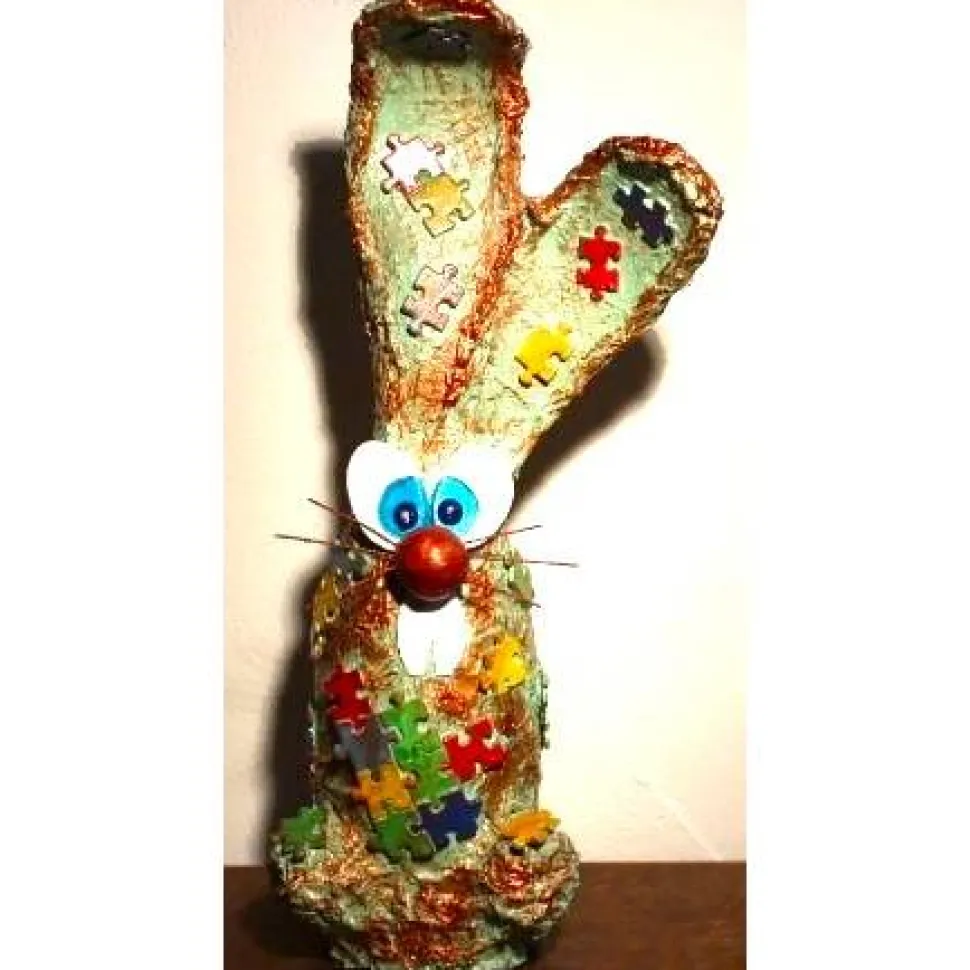 Das Haserl ist handgefertig, mit Acrylfarben in mint und kupfer bemalt.