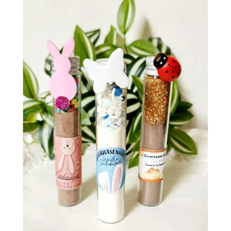 Pro Artikel erhalten Sie ein Reagenzglas mit Schraubverschluss und Original Schweizer Schokoladenpulver sowie Streussel.