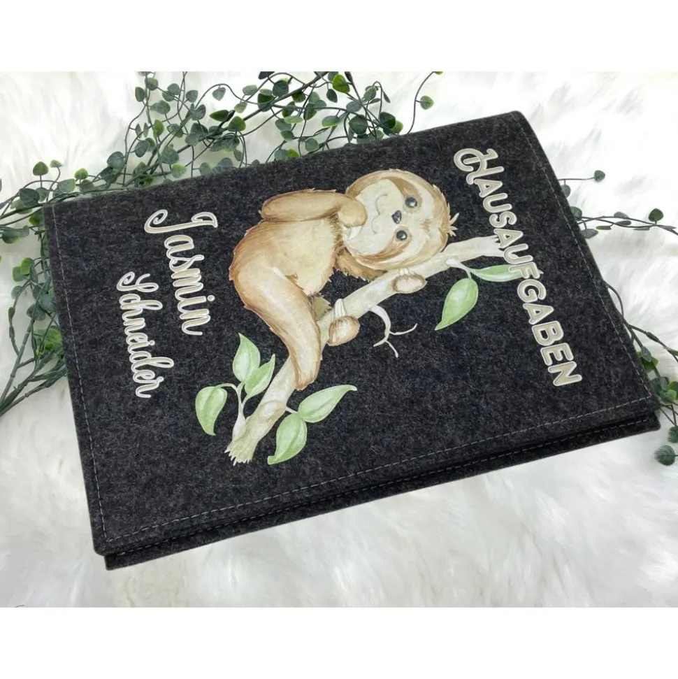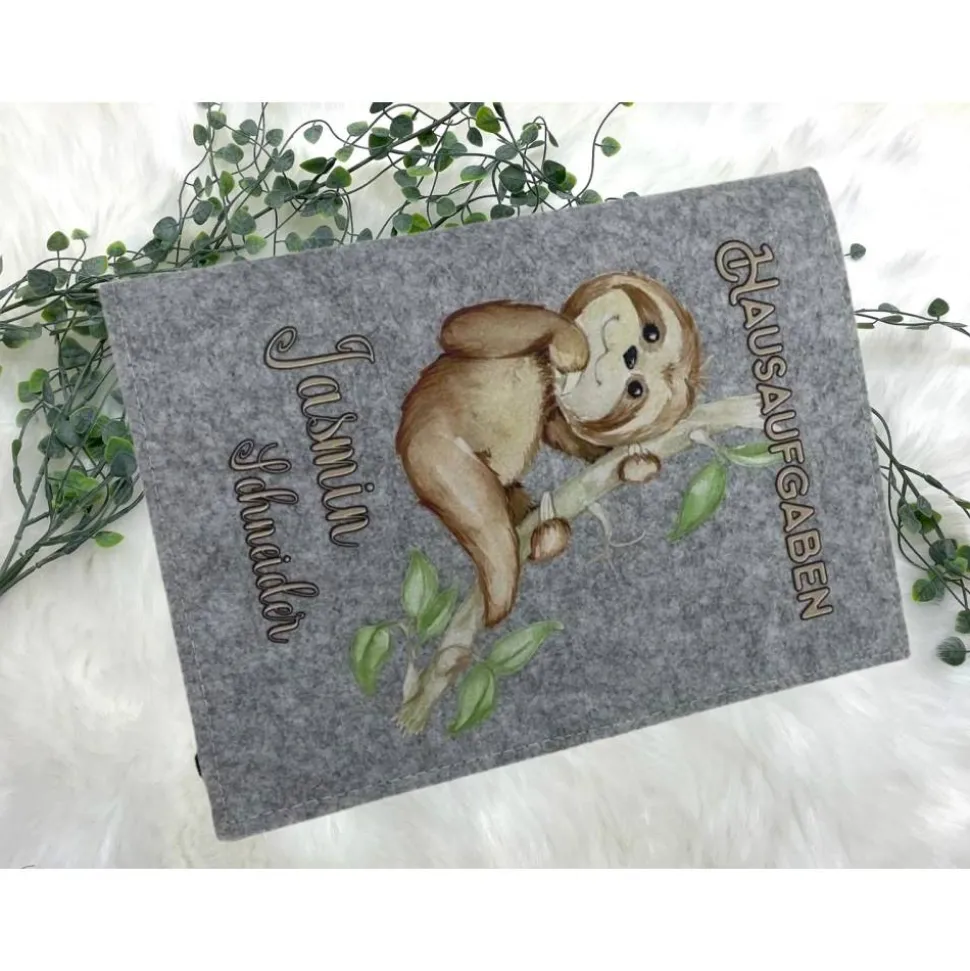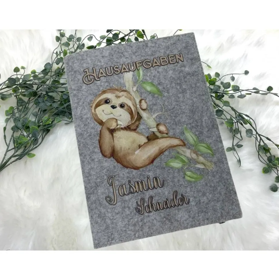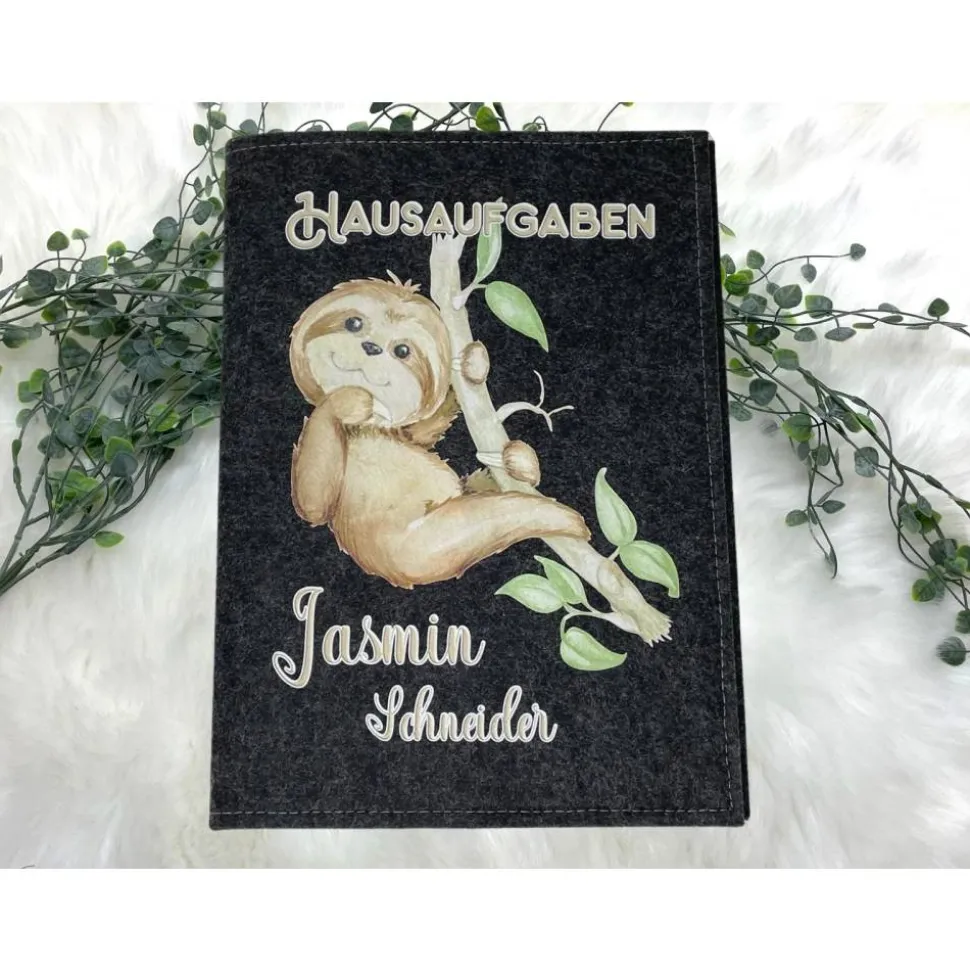 Hausaufgabenheft Hülle Filz Faultier Grundschule Schulheft Schutzhülle Umschlag Geschenkidee Einschulung
