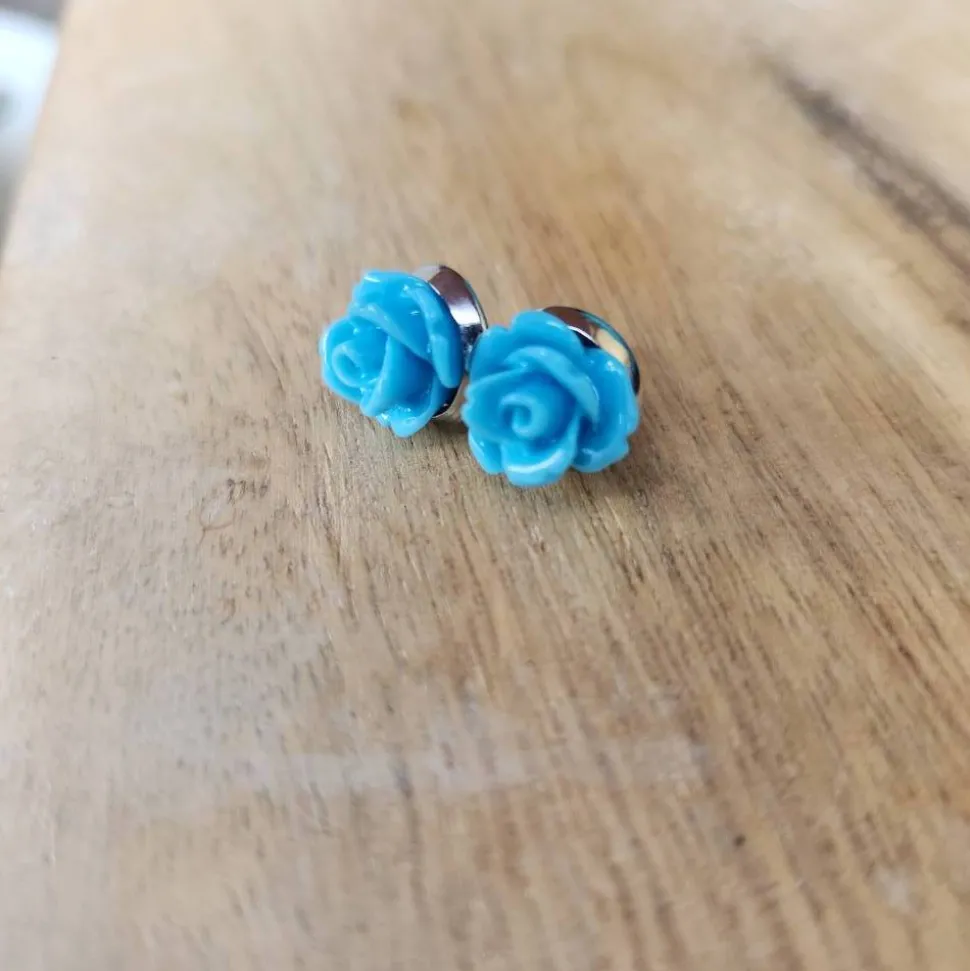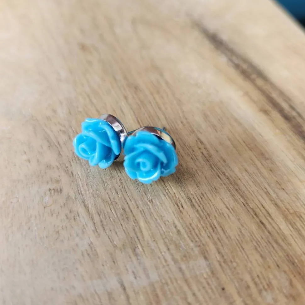hier werden diese tollen verspielten silberfarbenen Stecker mit hellblauen Blumen angeboten, für dich selbst oder als schönes Geschenk.