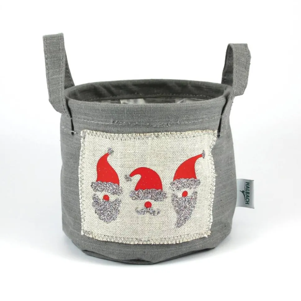 Ob als dekoratives Gewand für eine Topfpflanze, als Blumengeschenkverpackung oder als Aufbewahrung für allerlei Dinge, der Henkeltopf aus Leinen macht stets eine gute Figur. Der Topf ist innen mit Kunststofffolie ausgekleidet, am oberen Rand mit dickem Draht verstärkt und das Motiv ist einseitig.