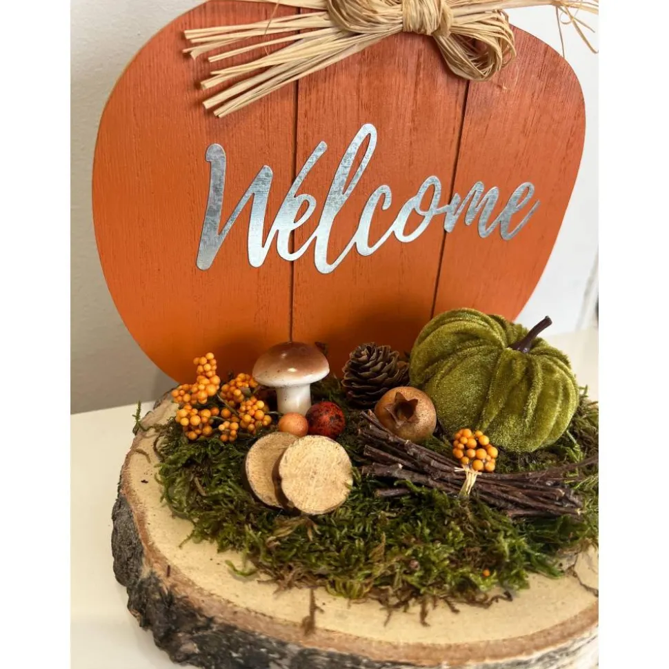 Hier verkaufe ich ein wunderschönes Herbstgesteck auf einer Baumscheibe, dass ich mit sehr viel Liebe zum Detail selbst hergestellt habe 🙂