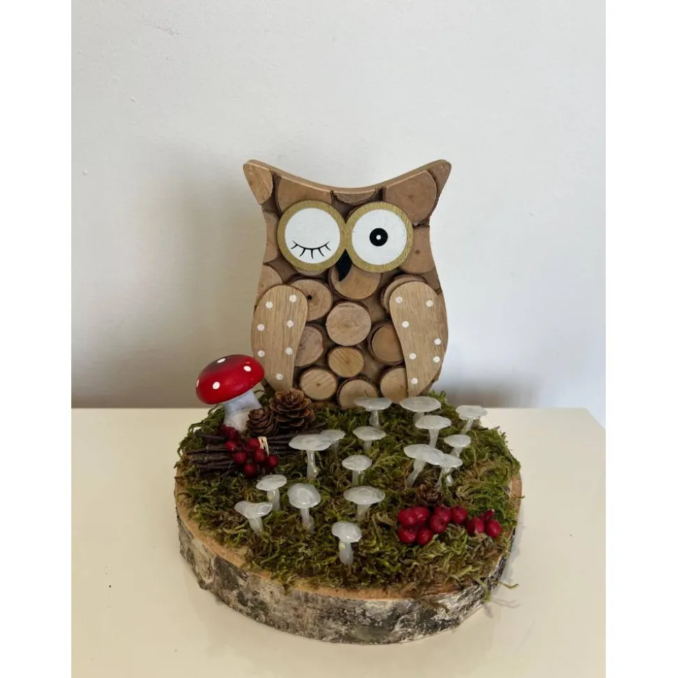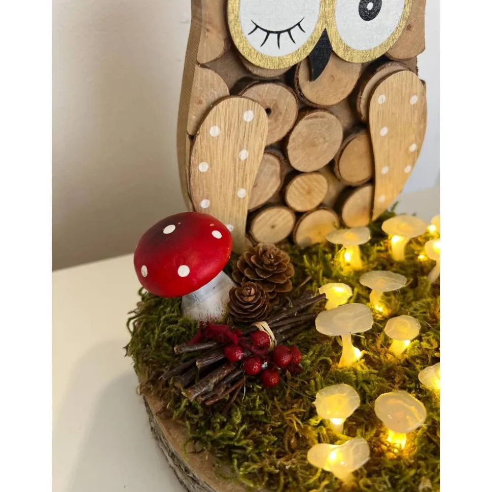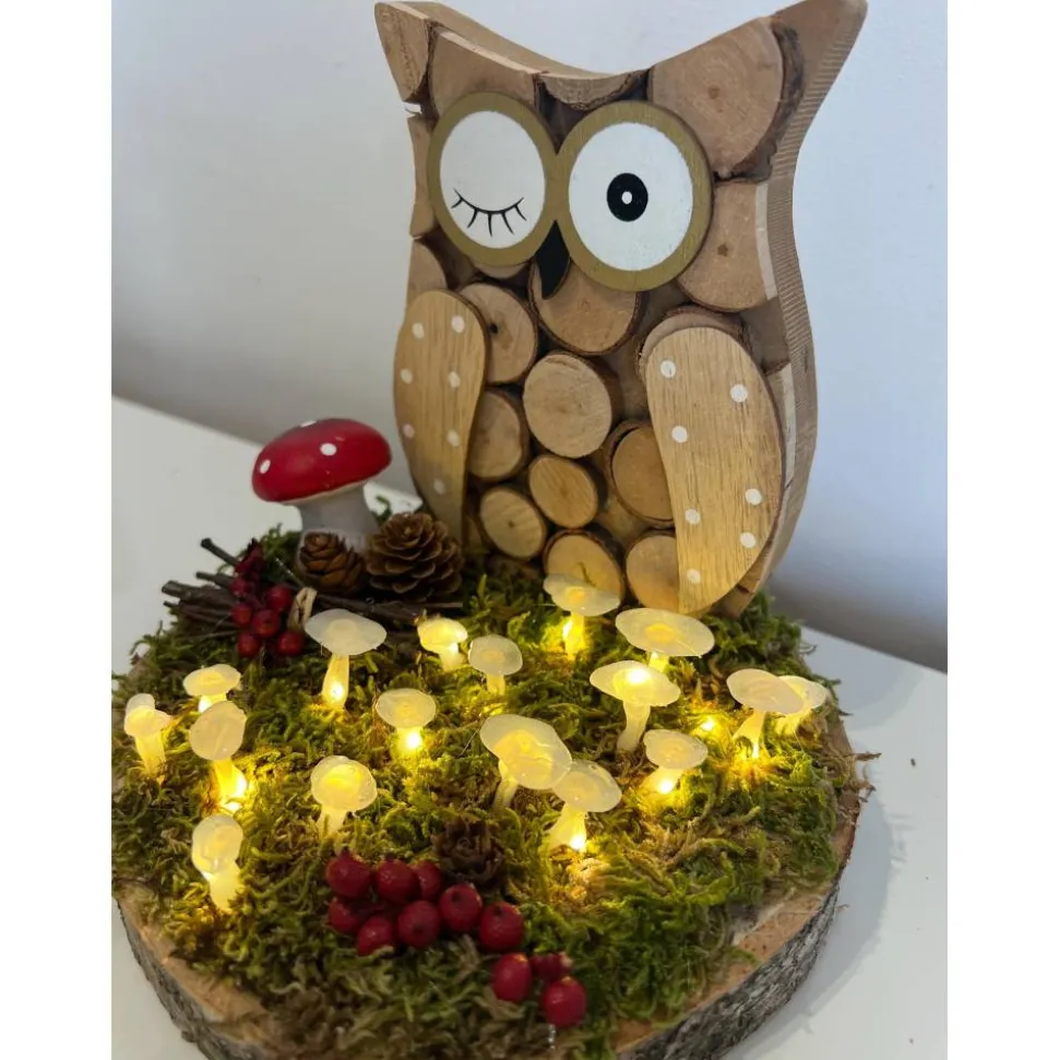 Hier verkaufe ich ein wunderschönes Herbstgesteck auf einer Baumscheibe mit Ledpilze, dass ich mit sehr viel Liebe zum Detail selbst hergestellt habe 🙂