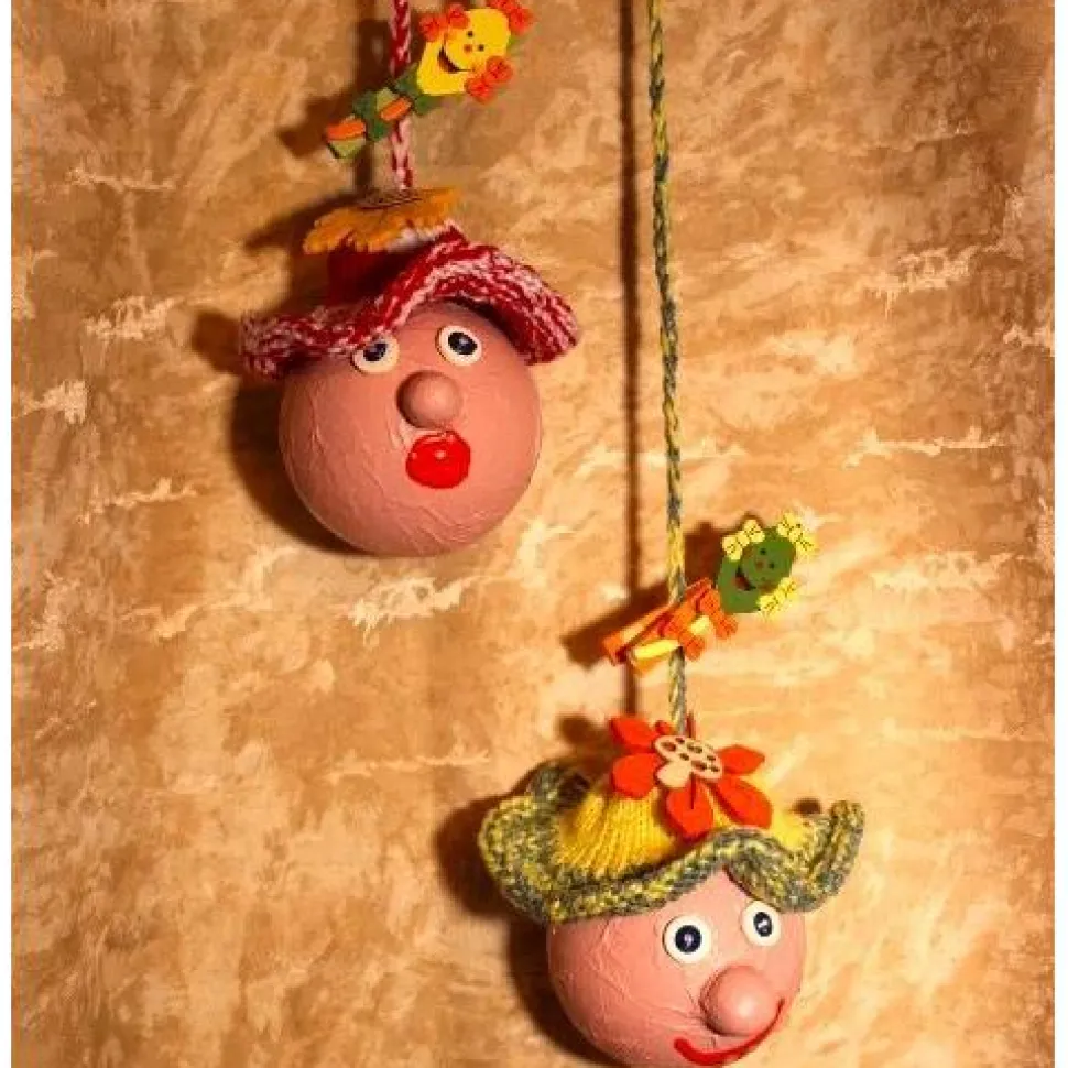 Die Nasen sind aus Modelliermasse geformt, die Augen bestehen aus Holz.