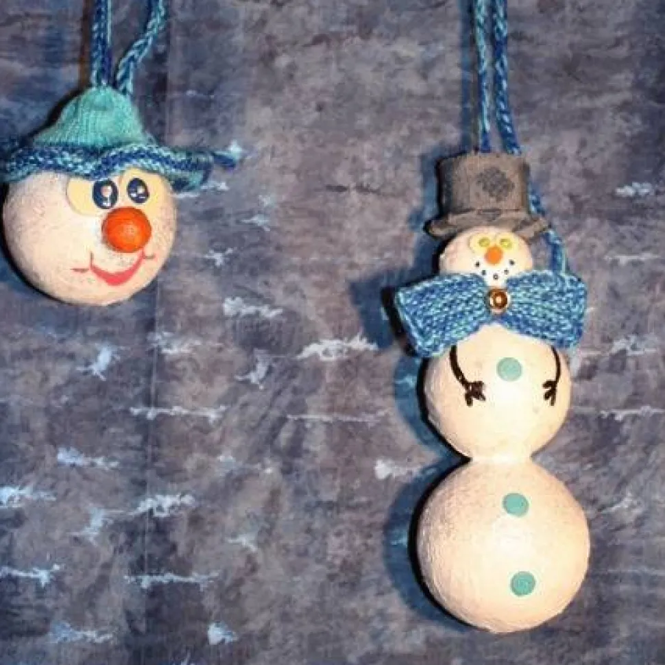 Mit diesen witzigen Unikaten verwandelst Du jede Herbstdeko in ein echtes Highlight. Das Schneemann-Set besteht aus einem Kugelschneeman und aus einem Schneemann mit 3 Kunststoffkugeln gestaltet. Die Figuren sind liebevoll mit Papier und handgestrickten Accessoires dekoriert, sowie mit Acrylfarben bemalt. Beide Wichtel sind mit viel Glitter dekoriert. Der große Schneemann ist mit Knöpfen und einem Zylinder aus Jeansstoff verziert. Der Kugelschneemann trägt ein handgestricktes Hütchen.