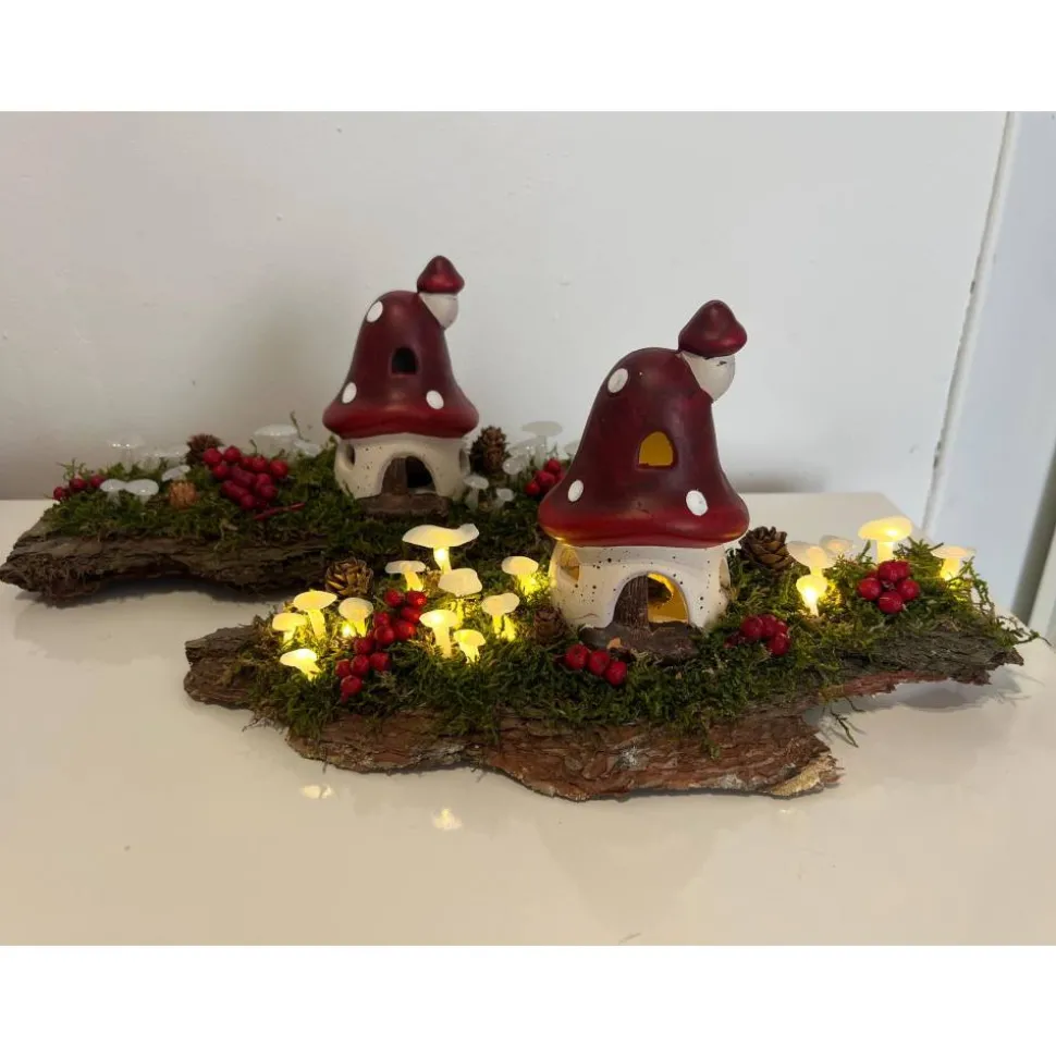 Hier verkaufe ich zwei wunderschöne Herbstgestecke auf einer Baumrinde mit Ledpilze, die ich mit sehr viel Liebe zum Detail selbst hergestellt habe 🙂