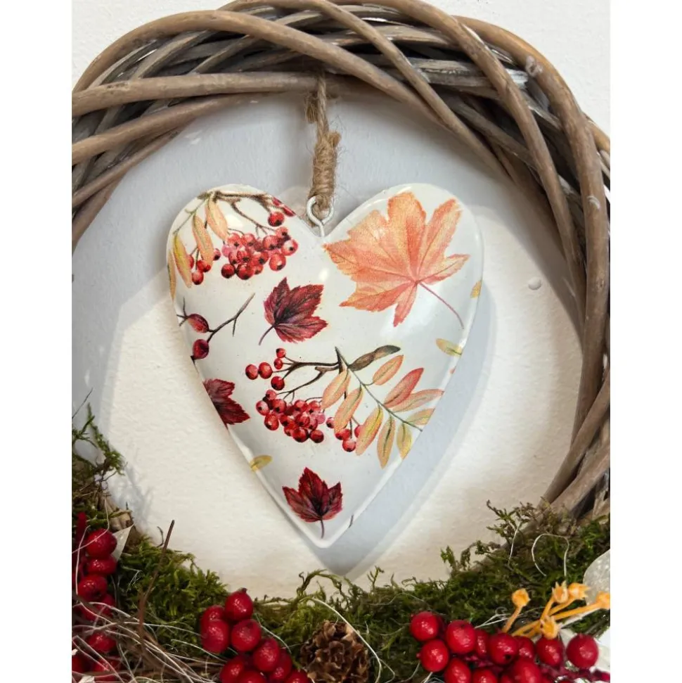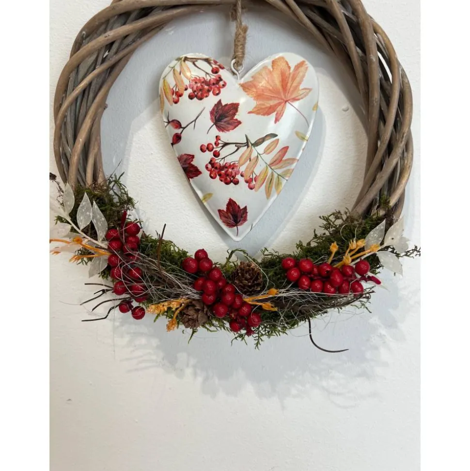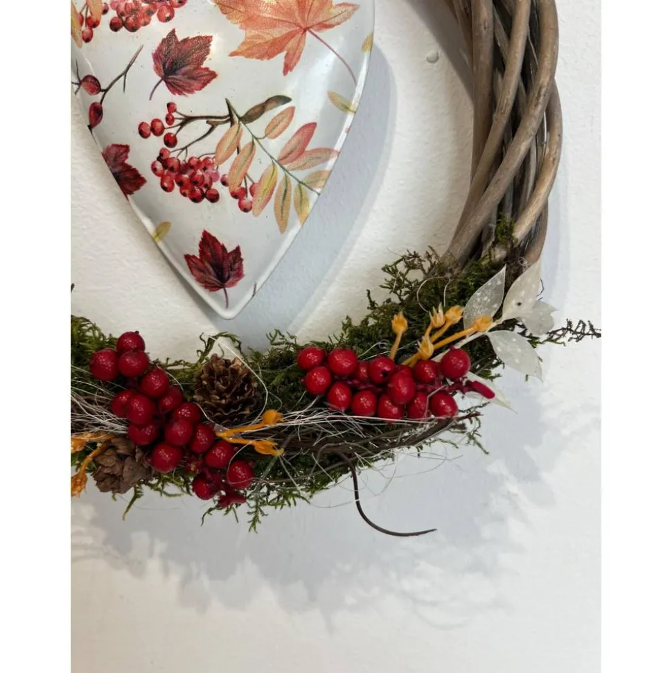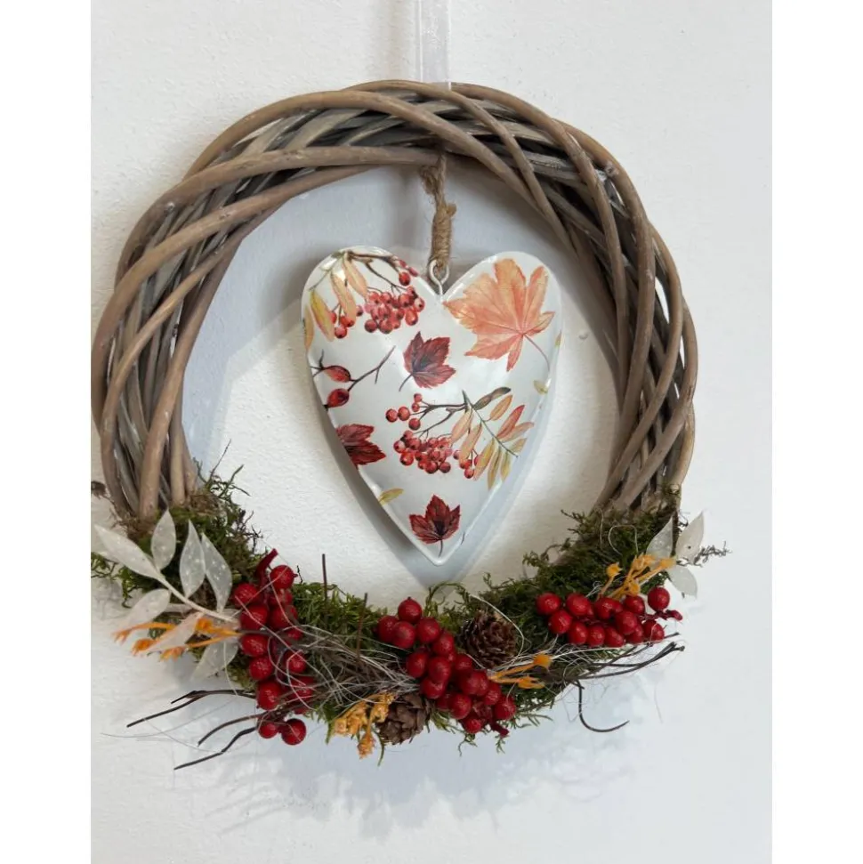 Der schöne Kranz ist mit einem Metallherz und verschiedener Herbstdeko verziert und mit ganz viel Liebe zum Detail selbst hergestellt 🙂