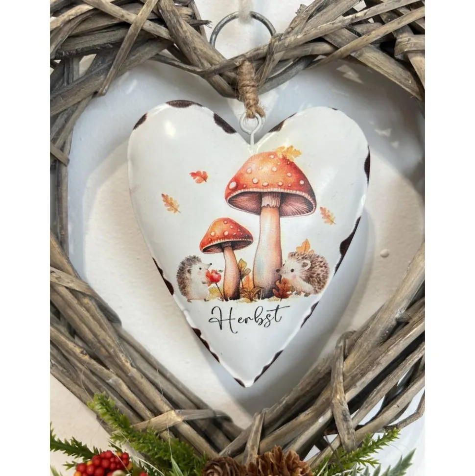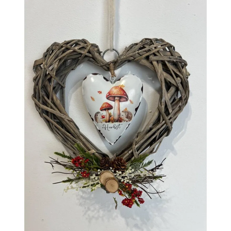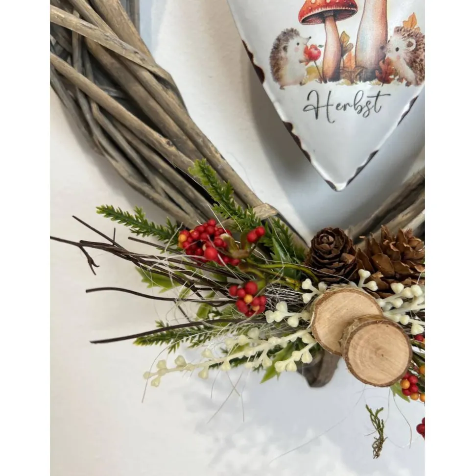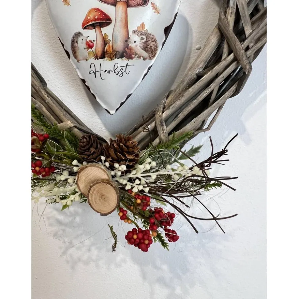Der schöne Kranz ist mit einem Metallherz und verschiedener Herbstdeko verziert und mit ganz viel Liebe zum Detail selbst hergestellt 🙂