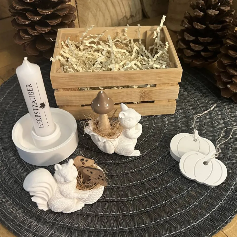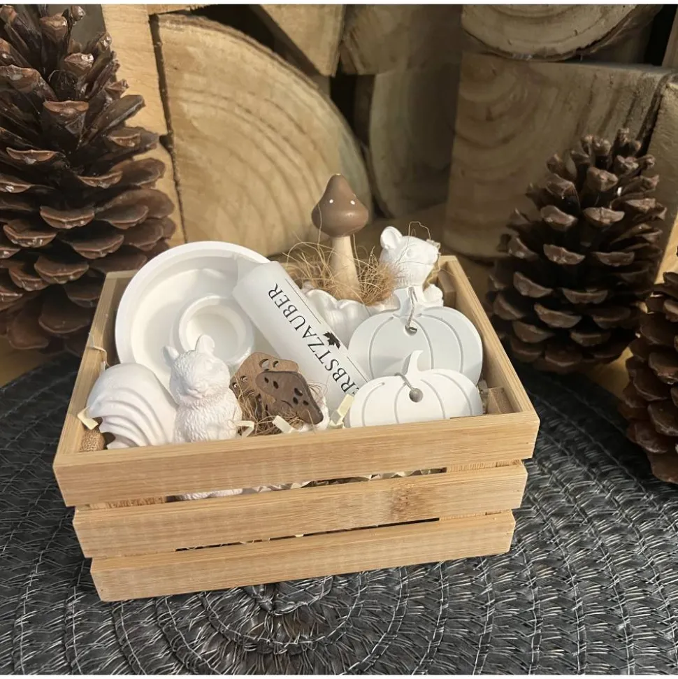 Um Transportschäden zu vermeiden, wird jedes Teil einzeln und bruchsicher verpackt. Nach dem Auspacken einfach alle Elemente wieder hübsch in der Kiste anordnen und schon ist dein persönlicher Herbstzauber-Moment fertig!
