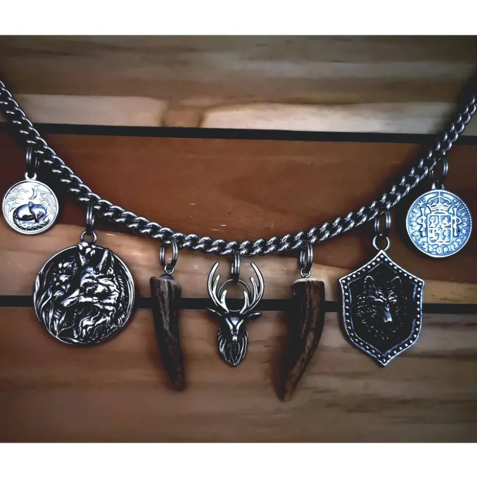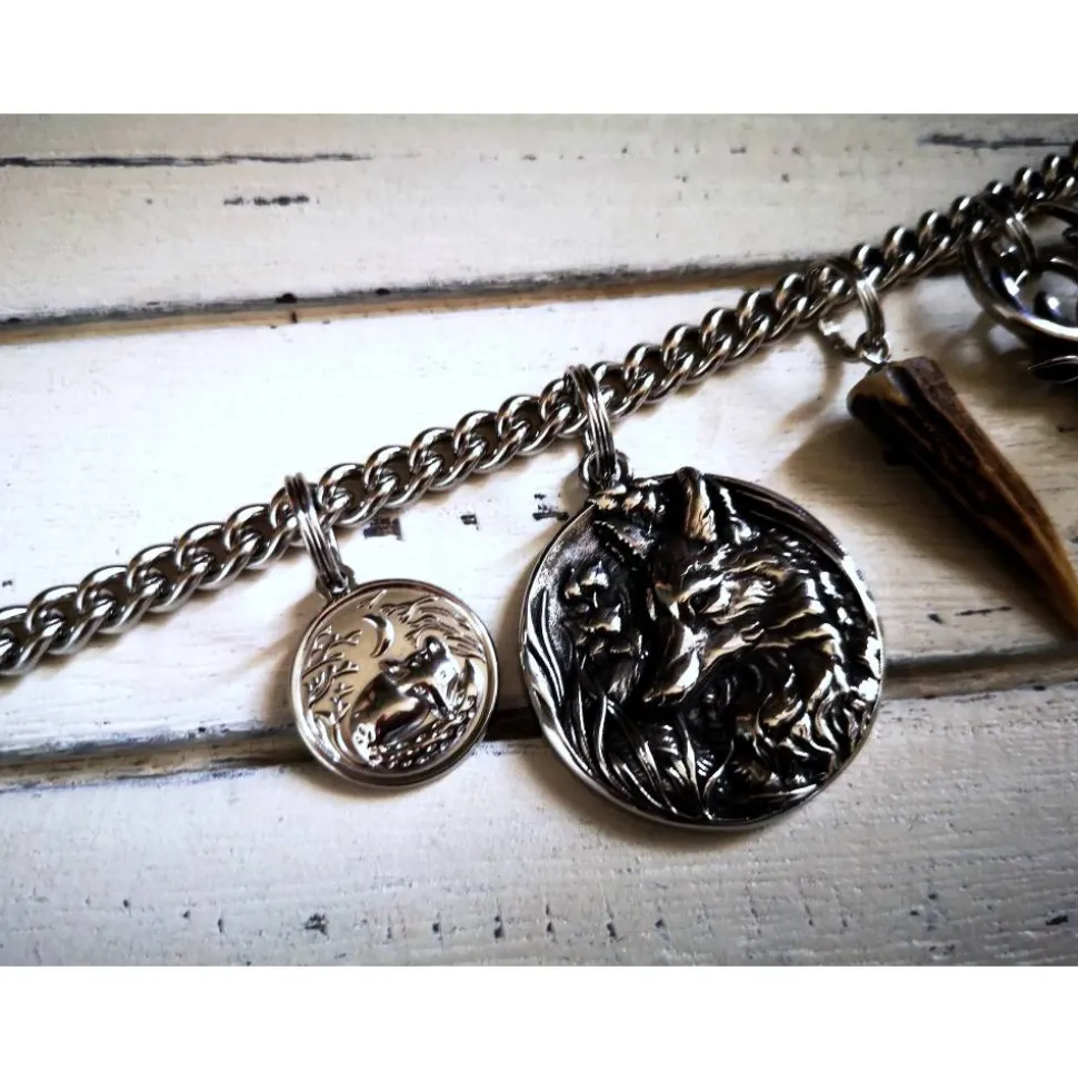 Mit Edelstahlelementen und Hornspitzen verziert, ist dieses imposante Charivari ein echter Blickfang.