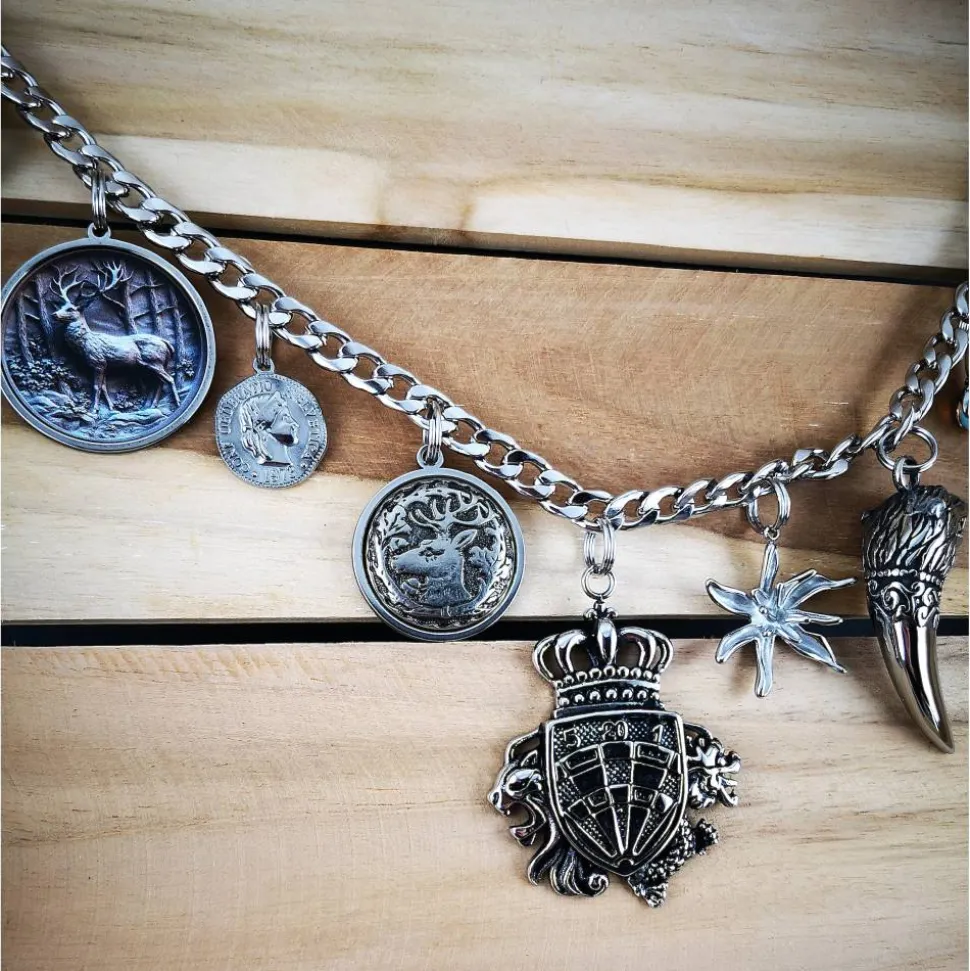 Das Charivari ist durch seine großen Edelstahlanhänger nicht nur optisch beeindruckend, sondern mit einem Gewicht von ca. 130 Gramm auch massiv verarbeitet.