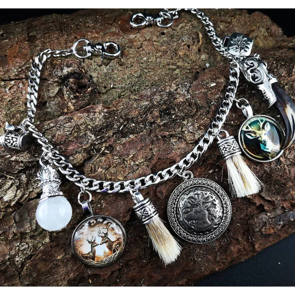 Besonders hervorzuheben ist der detailverliebte Hirschkopfanhänger aus Metall, die Wildbartanhänger (die Harre sind künstlich) sowie der kunstvoll gestaltete und verzierte Stoßzahn. Der liebevoll gestaltete Bierhumpen mit beweglichem Deckel sowie der verzierte Quarzanhänger ergänzen das Gesamtbild perfekt.