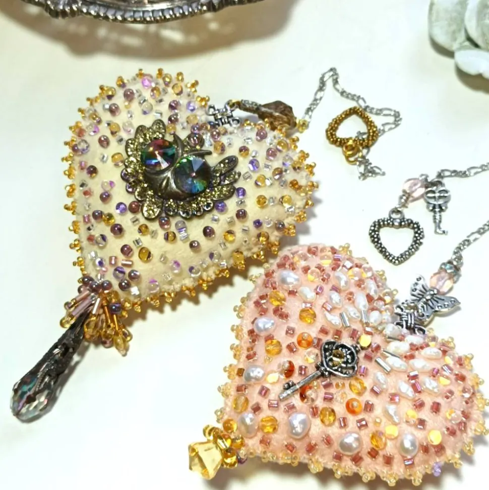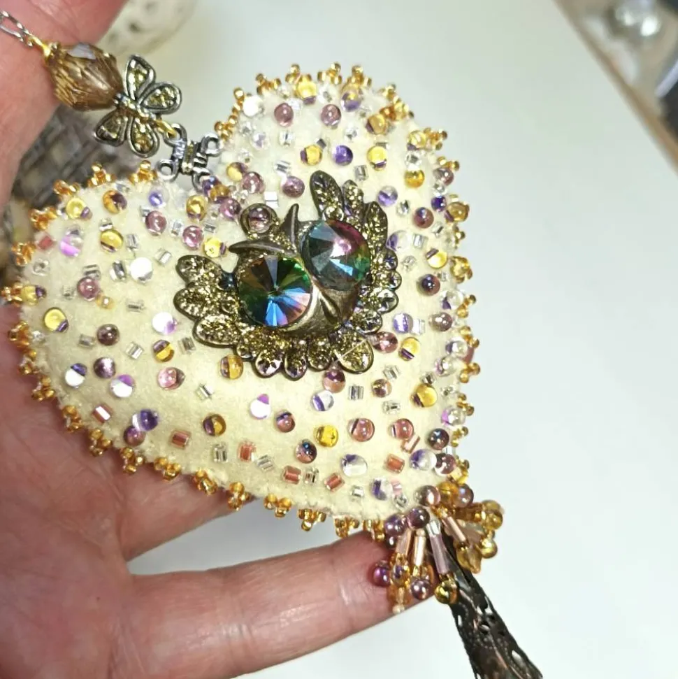 Die Rückseite des gepolsterten Herzen ist individuell mit Perlen um eine versilberte Eule gestaltet. So wird jedes Ornament zum dekorativen Highlight – ideal für Blumensträuße, Geburtstagen, Hochzeiten, Muttertag oder als Tischdeko zur Verlobung.