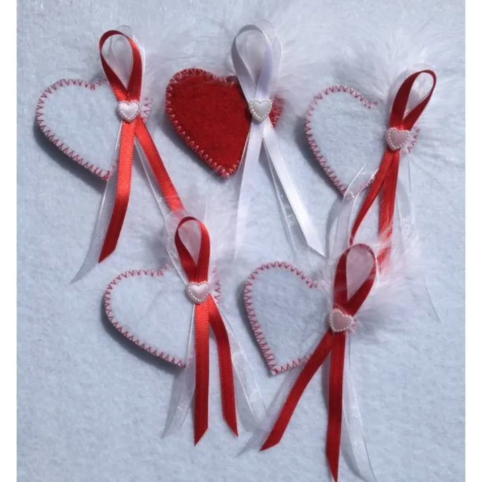 Verziert ist sie mit einer Marabufeder, einem Perlenherz und festlichen Schleifchen.