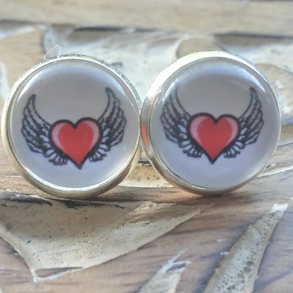Motiv: Herz Engel, das zweite Bild zeigt die 925er Silber Stecker in 10mm