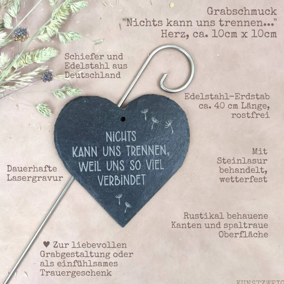 Die Schiefertafel mit wundervollem Trauerspruch kann mit Hilfe des Erdstabes auf das Grab gesteckt werden. Du kannst es auch verschenken, um Angehörigen deine Anteilnahme auf besondere Weise mitzuteilen.