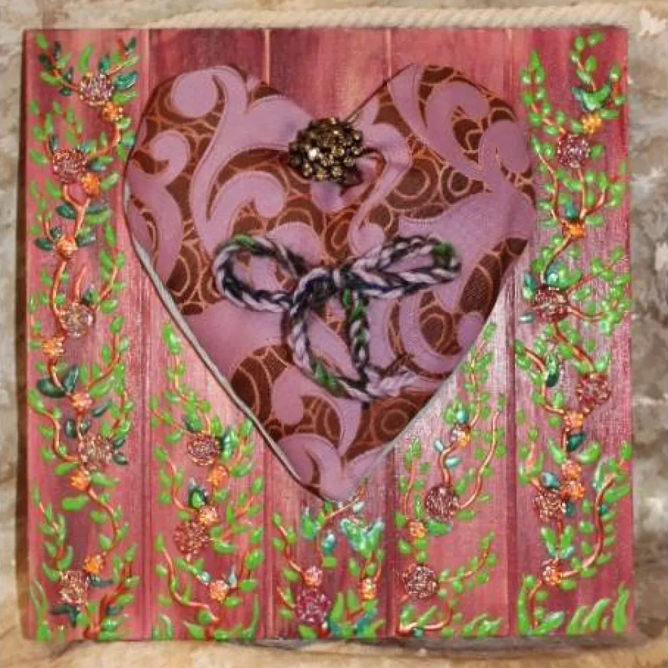 Größe: 24 x 24 cm, ca. 1,5 cm tief, wo das Herz angebracht ist ist die Tiefe ca. 4 cm.