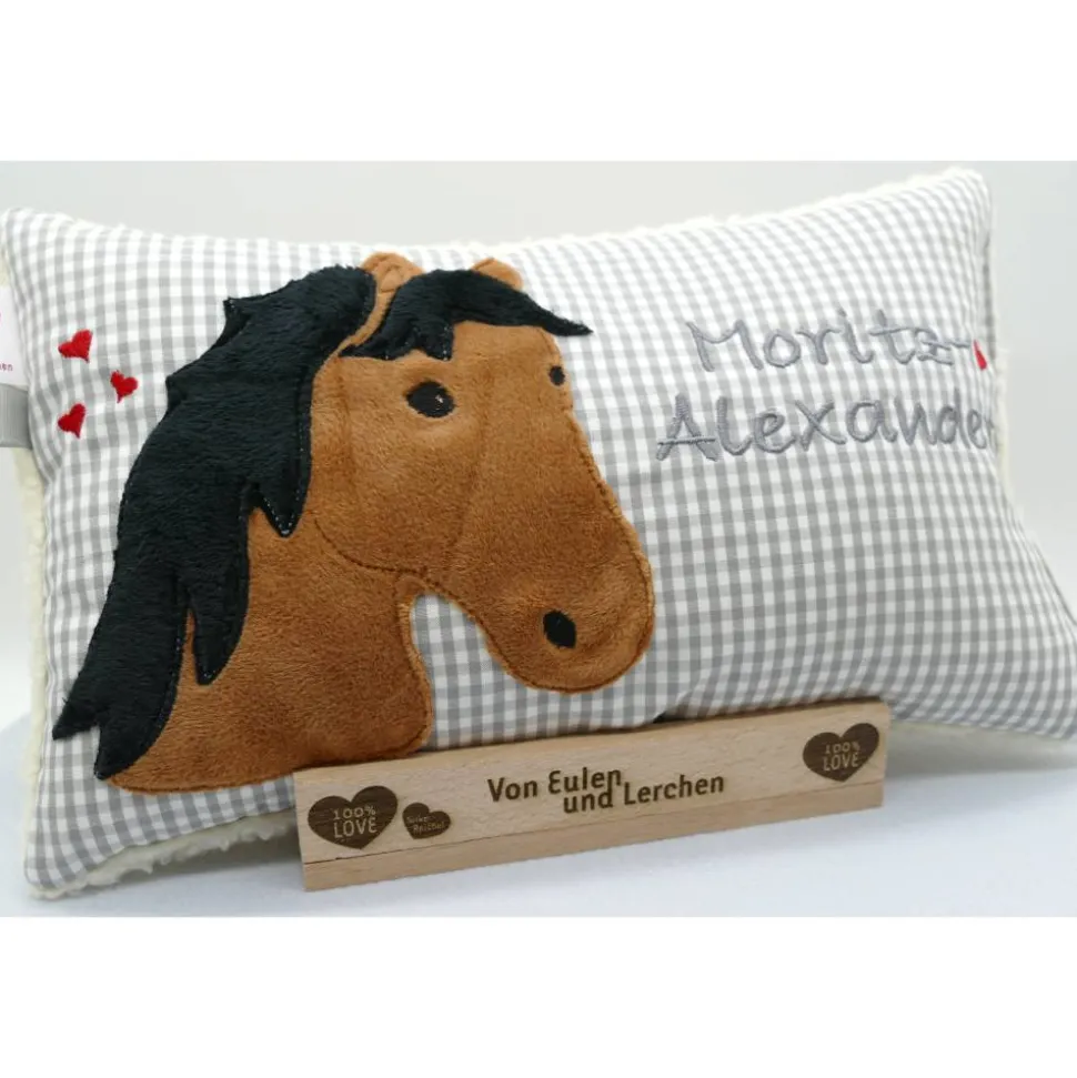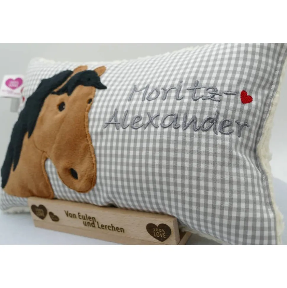 Aufwendig und mit viel Liebe zum Detail genähtes und gesticktes Mini-Kissen