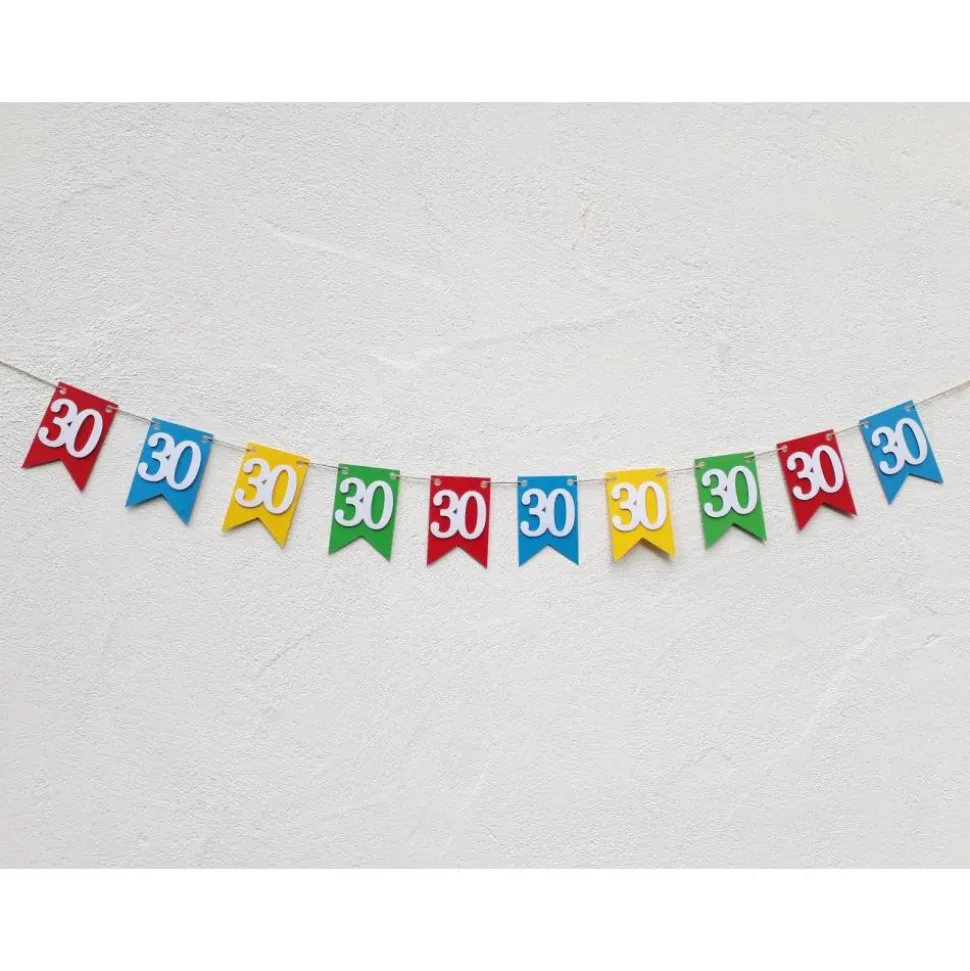 Die Wimpel sind etwa 13,5 cm hoch und 9,5 cm breit. Insgesamt ist die Girlande etwa 1,30 m lang.