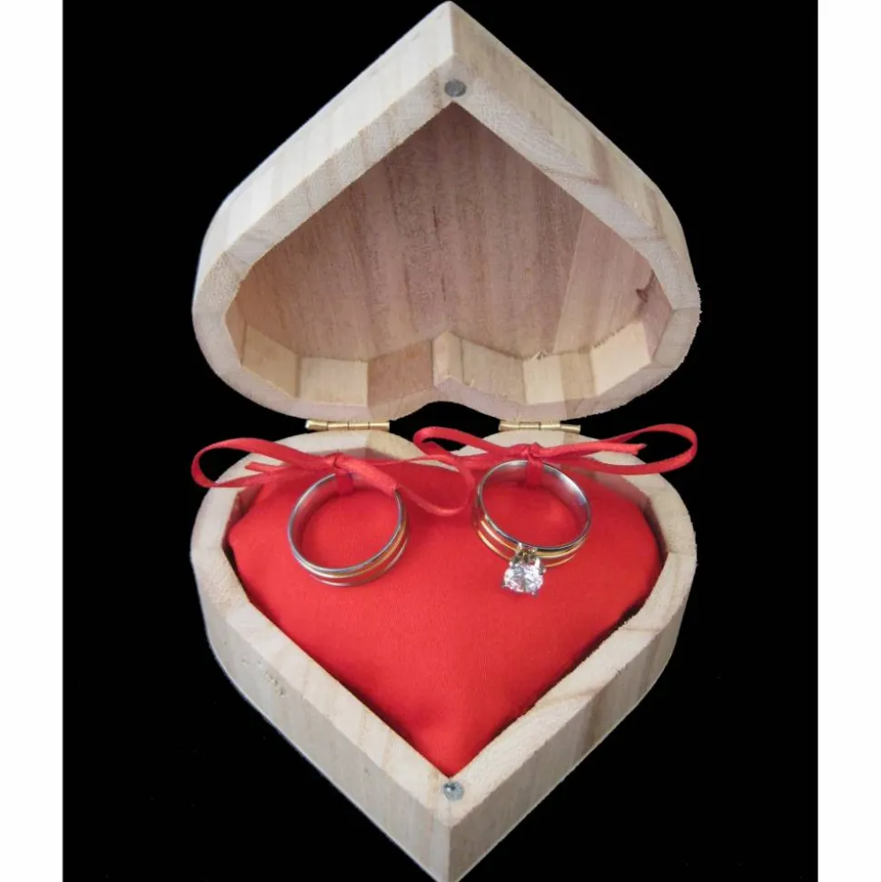 Die Box ist aus Bambusholz gefertigt und wird mit einem Magnetverschluß geschlossen. Das Ringkissen ist in liebevoller Handarbeit aus hochwertiger Baumwolle oder Jutestoff genäht und ist in 3 Farben bestellbar (rot, weiß und braun/Jute).
