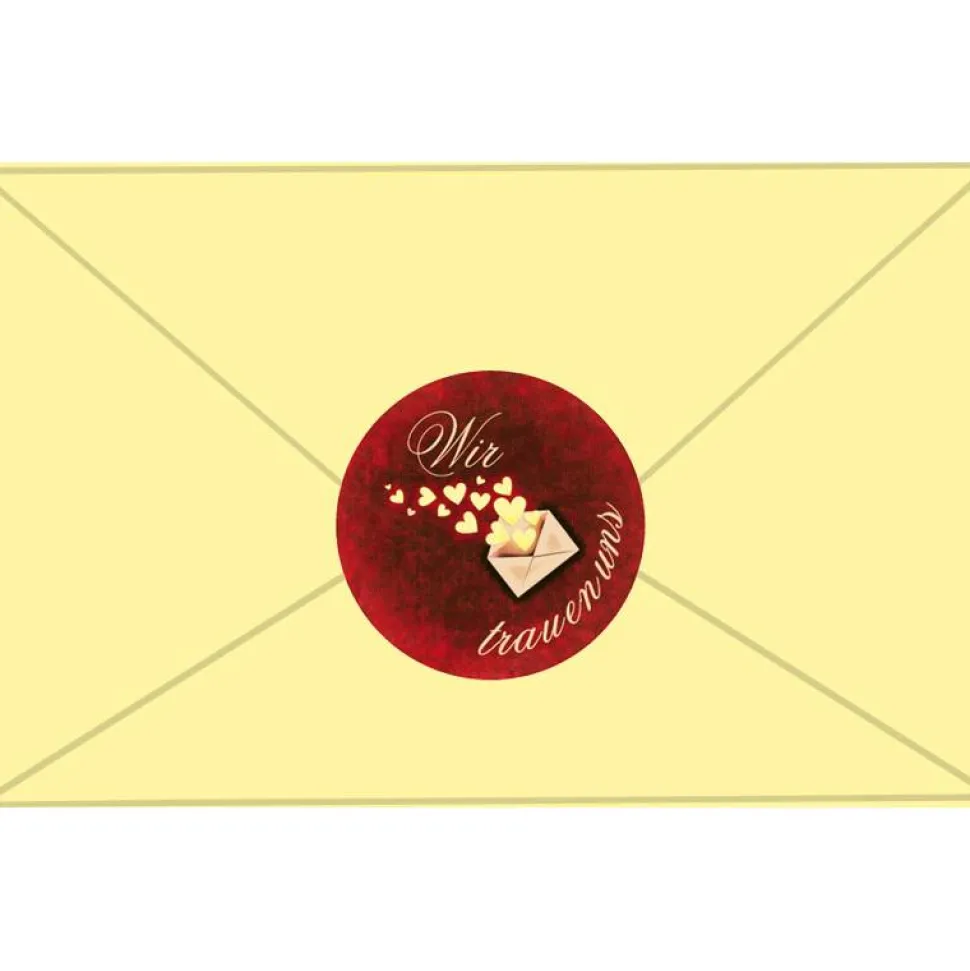 Hochzeitsaufkleber | Liebesbrief mit Herzen – Wir trauen uns