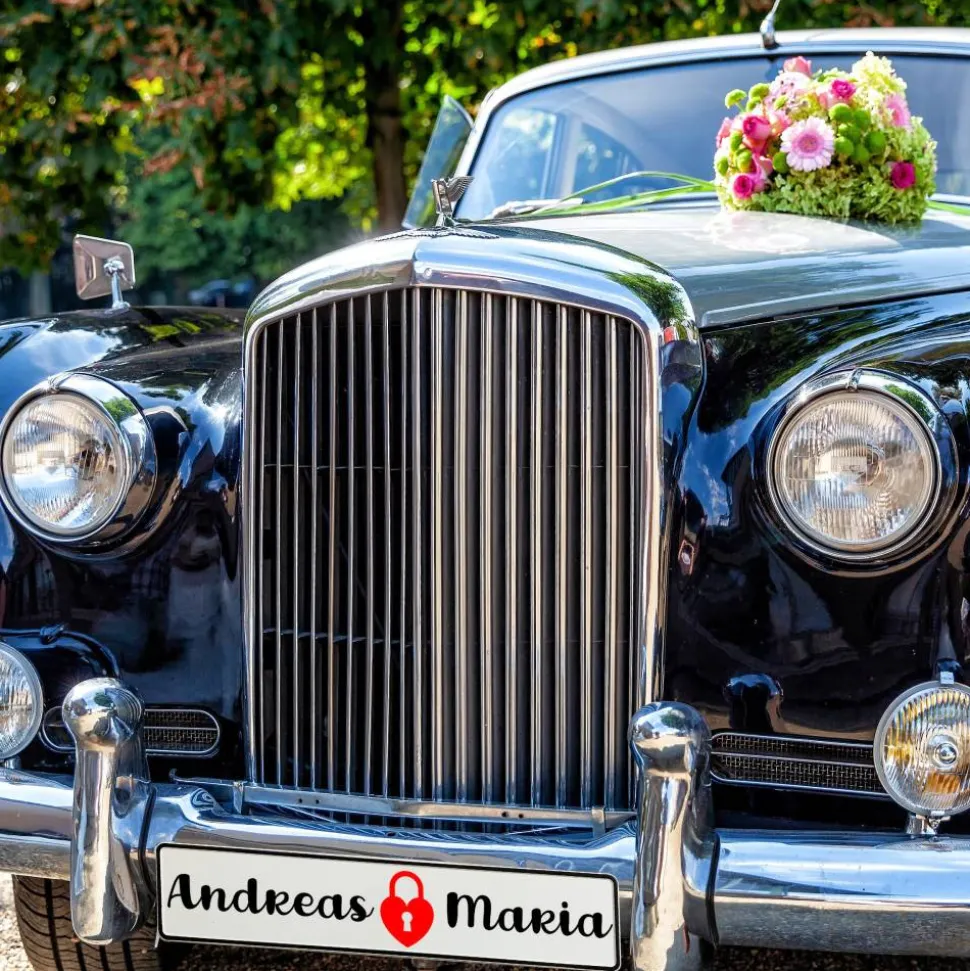 Stell dir vor, wie das Brautauto mit einem Schild glänzt, das eure Namen oder euren Wunschtext trägt. Damit wird dein Hochzeitsauto zur Bühne für den großen Auftritt.