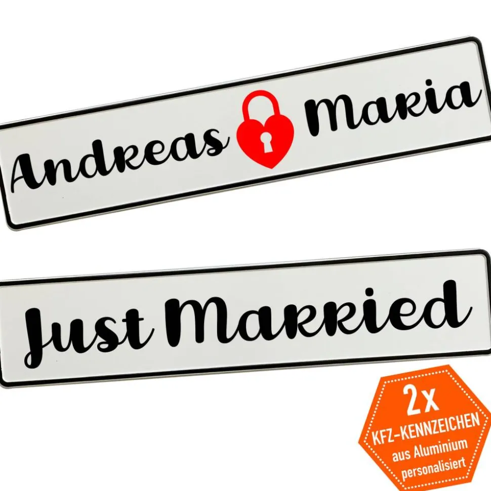 Du gibst einfach die gewünschten Namen an und wählst die passende Schriftart – wir fertigen dein persönliches Hochzeitskennzeichen mit viel Liebe zum Detail. Schon in kurzer Zeit hältst du deine individuelle Autodeko in den Händen.