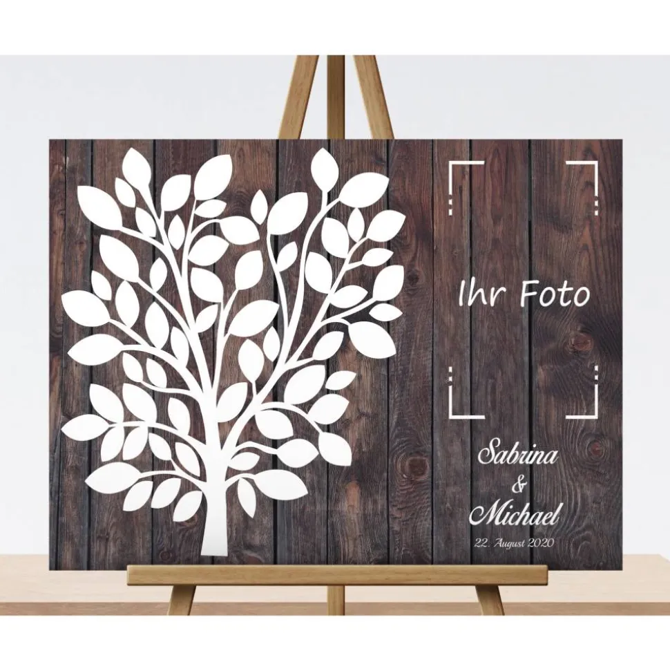 Ein ganz besonderes Hochzeitsgästebuch auf Leinwand, das nicht nur Erinnerungen, sondern auch Ihre persönliche Geschichte festhält. Der kunstvoll gestaltete Hochzeitsbaum wird von Gästen mit Fingerabdrücken und Unterschriften verziert – so entsteht ein einzigartiges Kunstwerk.