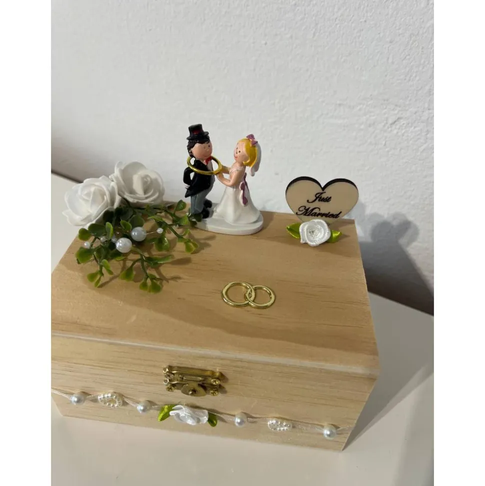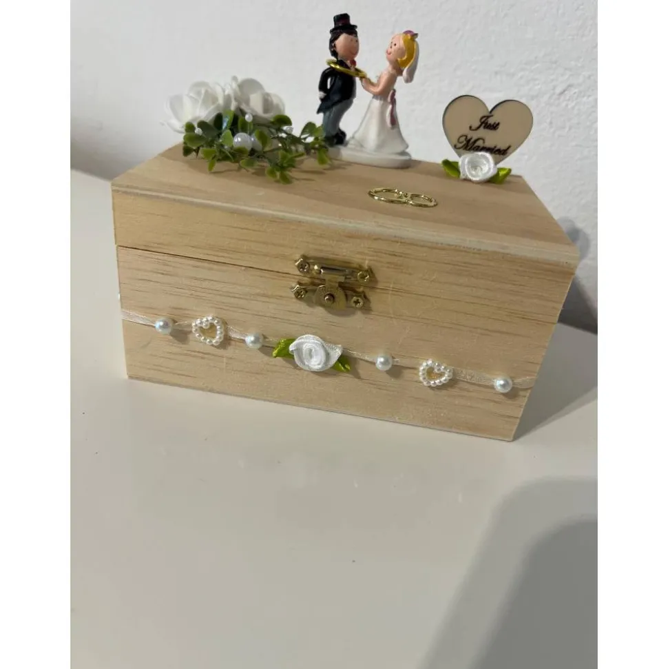 Ein schönes Geldgeschenk zur Hochzeit aus einer Holztruhe mit Brautpaar und verschiedener Hochzeitsdeko, dass man als Geldgeschenk verschenken kann und danach als Erinnerung aufstellen kann 🙂