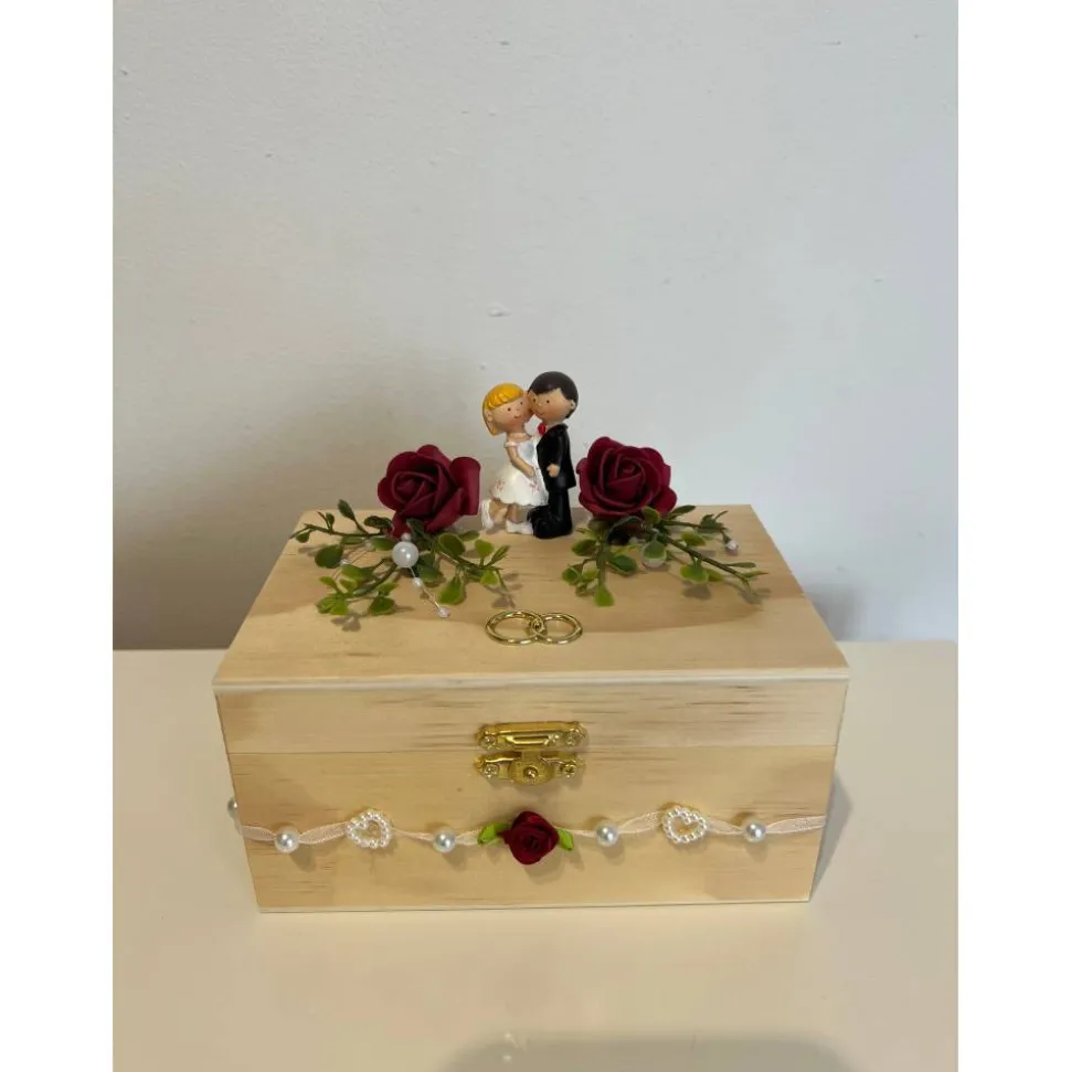 Ein schönes Geldgeschenk zur Hochzeit aus einer Holztruhe mit Brautpaar und verschiedener Hochzeitsdeko, dass man als Geldgeschenk verschenken kann und danach als Erinnerung aufstellen kann 🙂