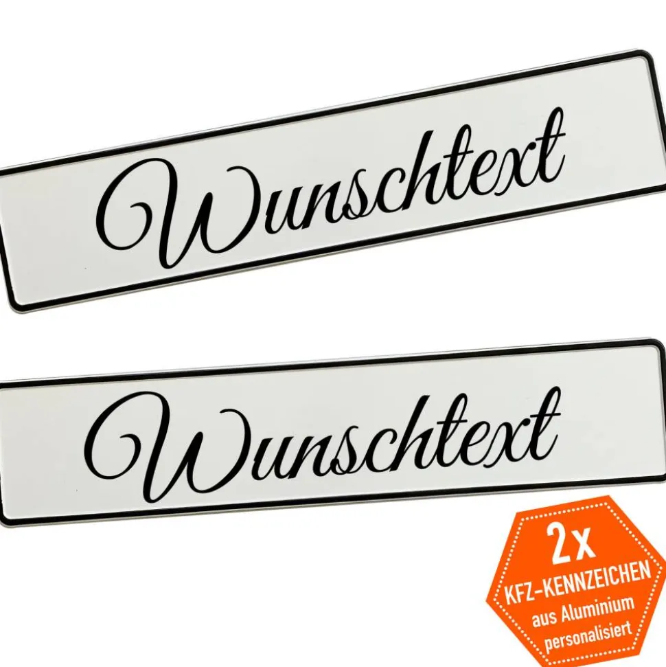 – 2x KFZ-Kennzeichen aus Aluminium, individuell beschriftet mit Namen und Motiv