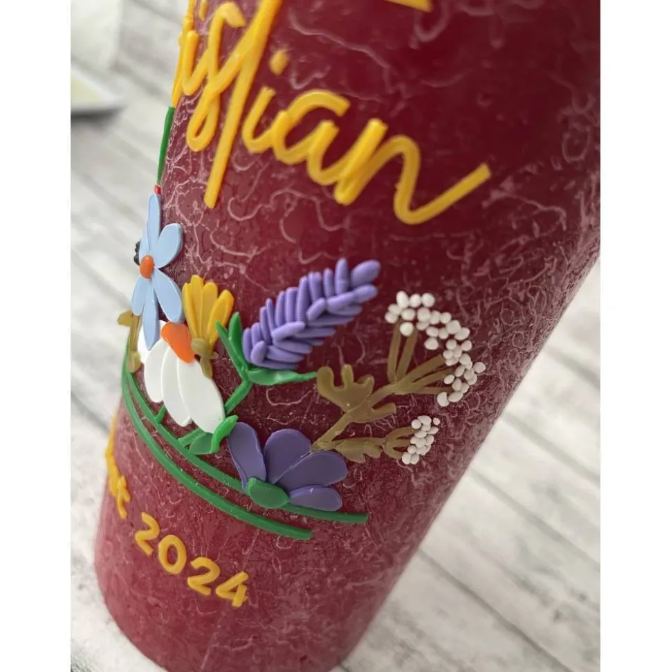 Falls die Kerze mit Bändern dekoriert wurde, nur bis dahin die Kerze abbrennen lassen bzw. die Deko abnehmen bevor Sie die Kerze komplett abbrennen lassen.