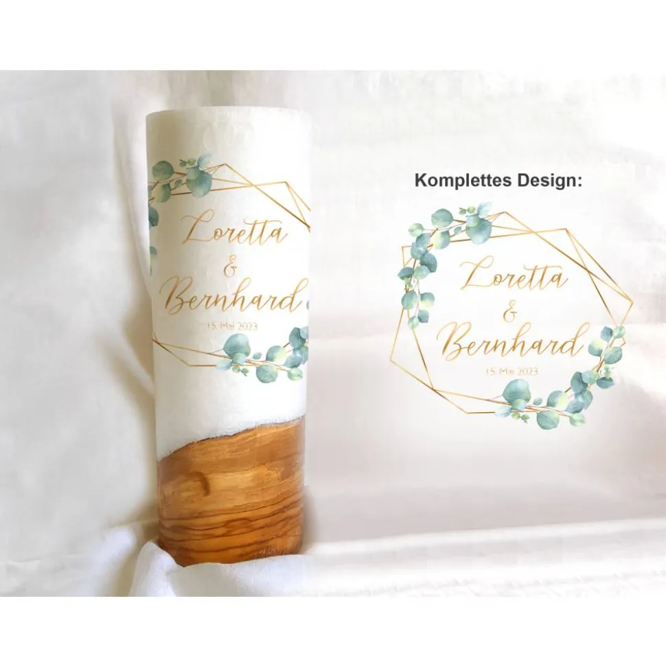 Die Kerze wird ohne Dekoration (Holzscheibe etc.) geliefert.