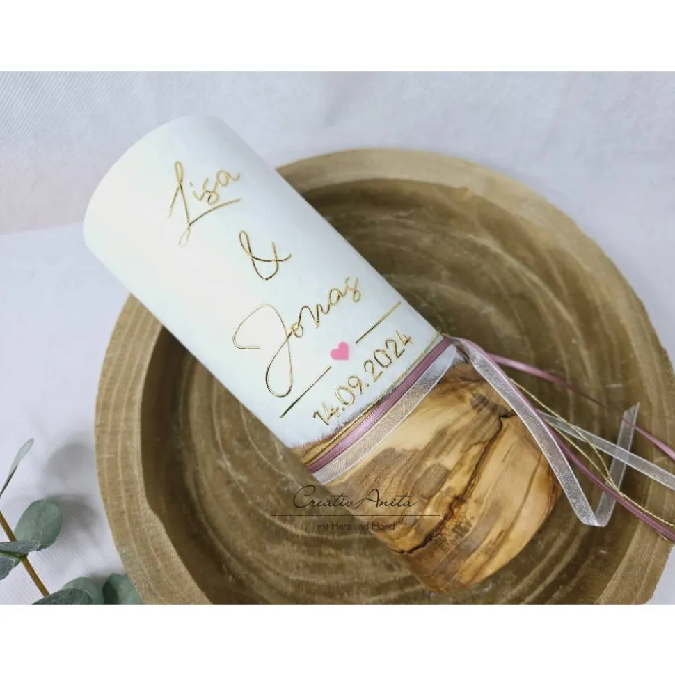 Liebevoll gestaltete Kerze personalisiert mit Ihren Namen und Datum (Ein Datum im Preis inbegriffen).