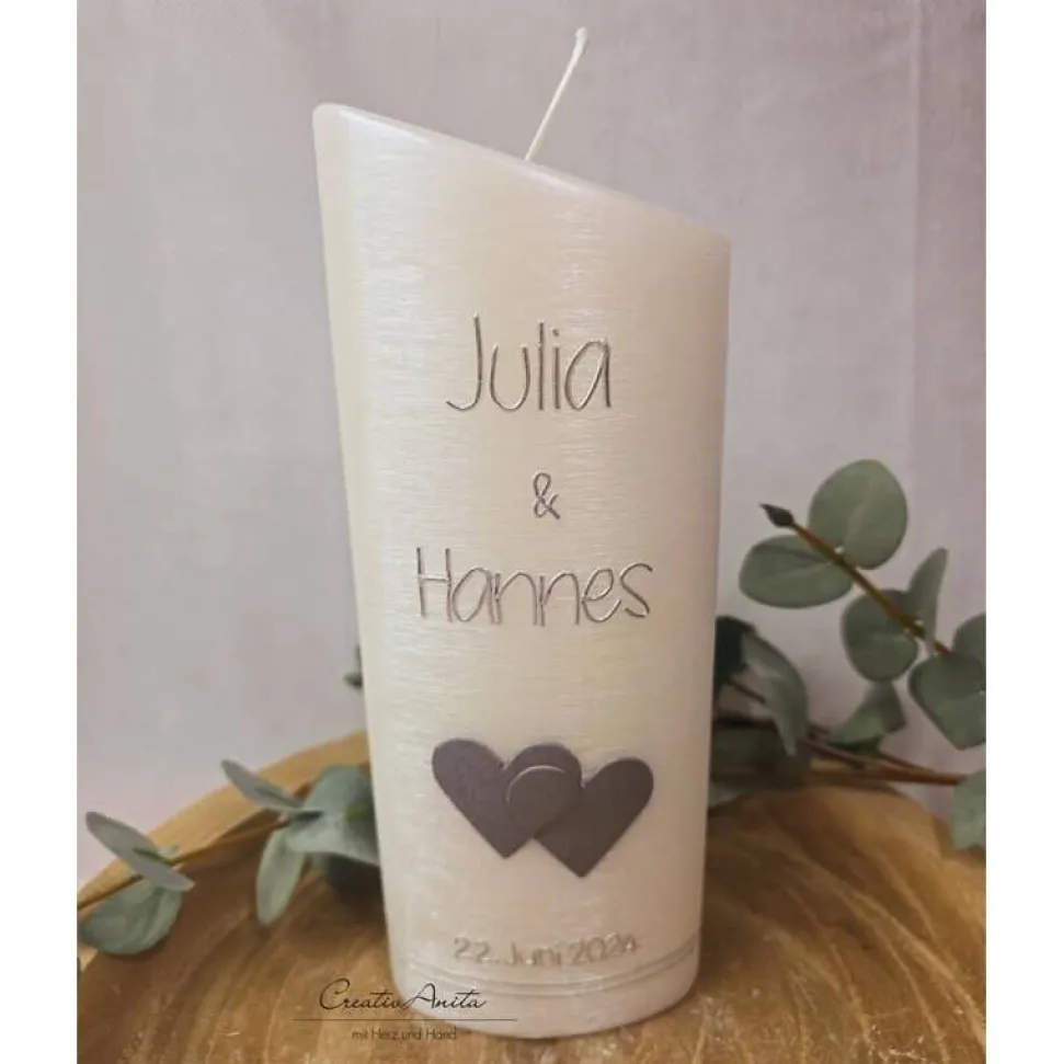 Gerne personalisieren wir die Kerze auch mit zwei Namen und Hochzeitsdatum
