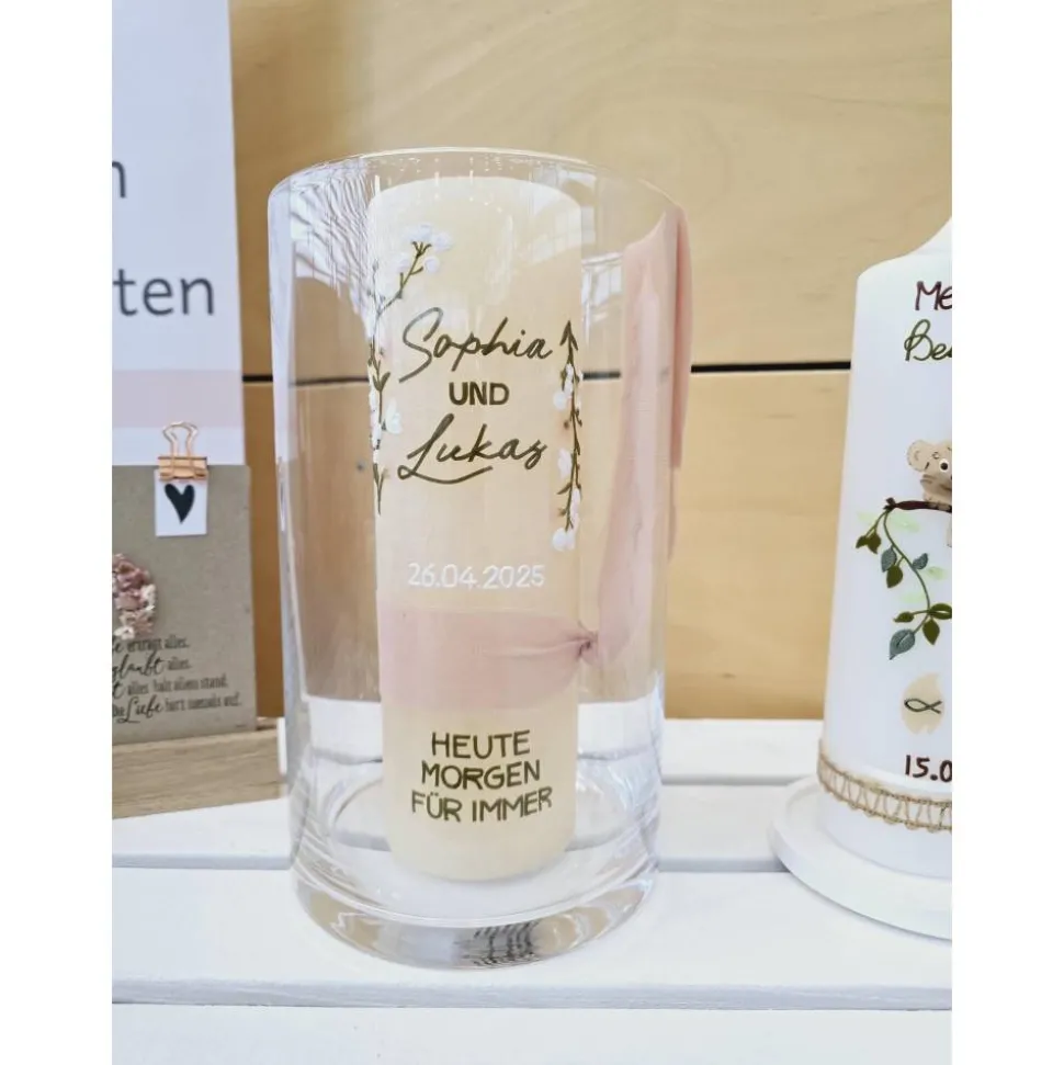 Deswegen ist jede einzelne Kerze ein wunderschönes Unikat und kleinere Abweichungen vom Foto sind dadurch natürlich möglich.