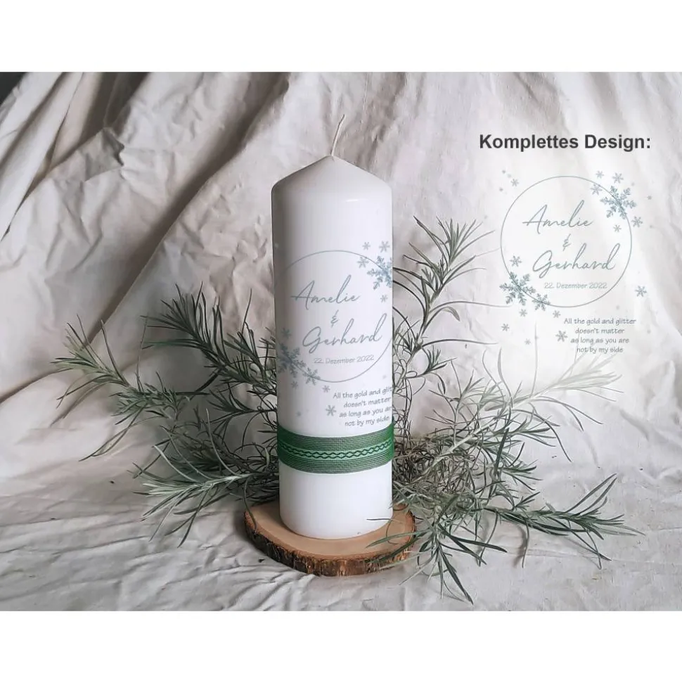 Die Kerze wird ohne Dekoration (Band, Holzscheibe etc.) geliefert.