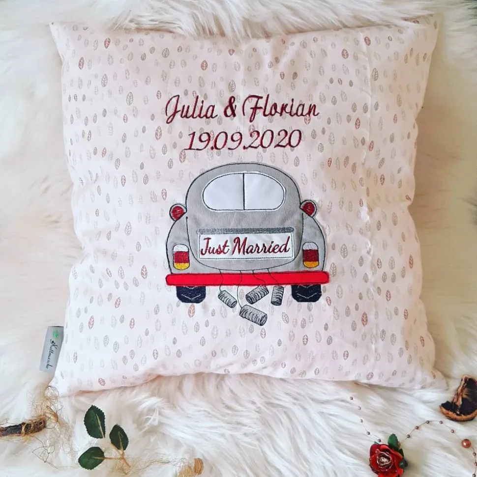 Der Kissenbezug wird mit all euren gewünschten Daten bestickt.