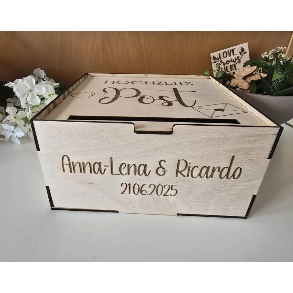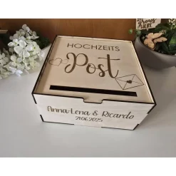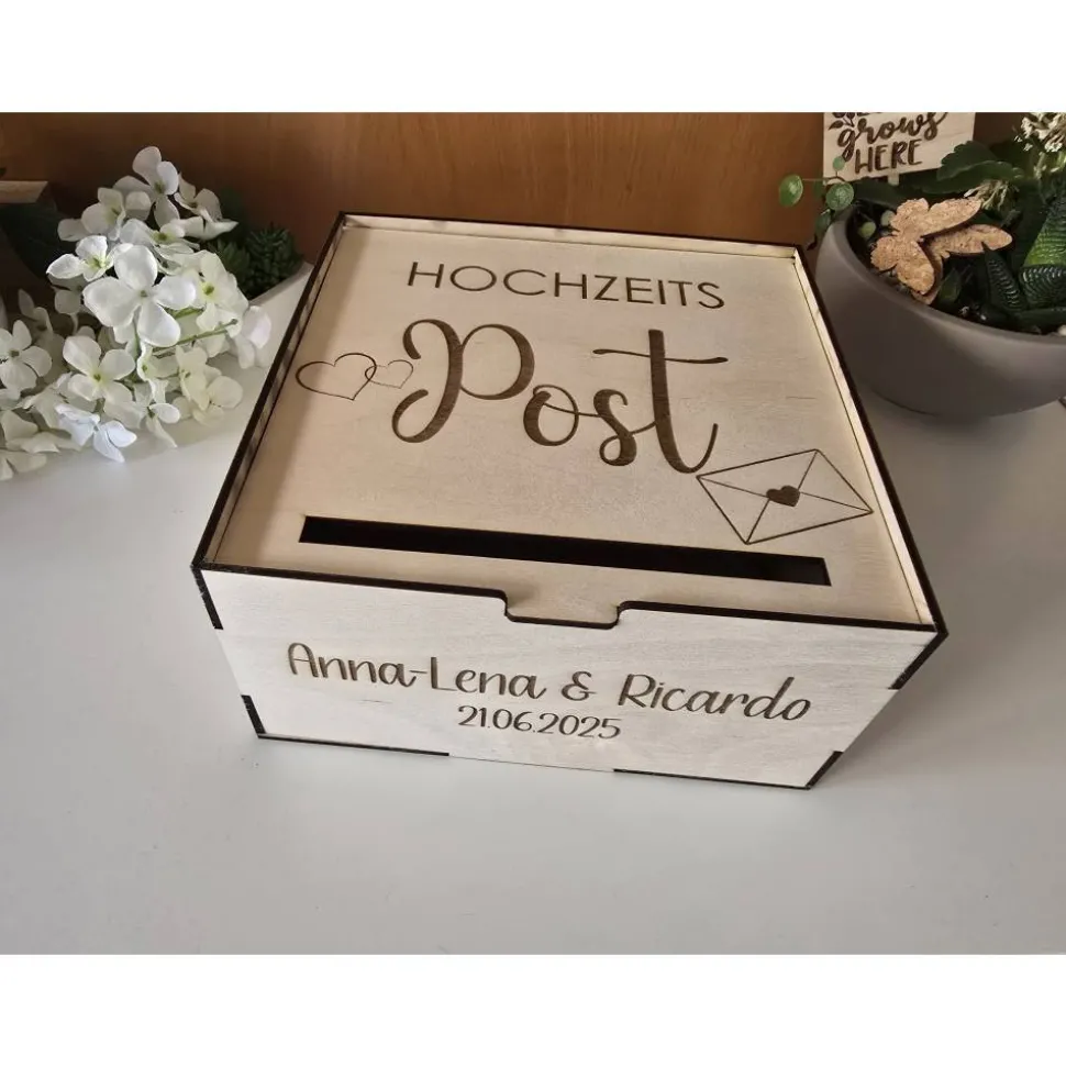 Kartenbox aus Holz mit Personalisierung/Wunschgravur zum Aufbewahren von Geldgeschenken und Karten.