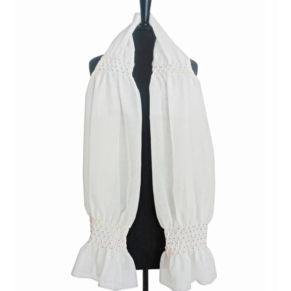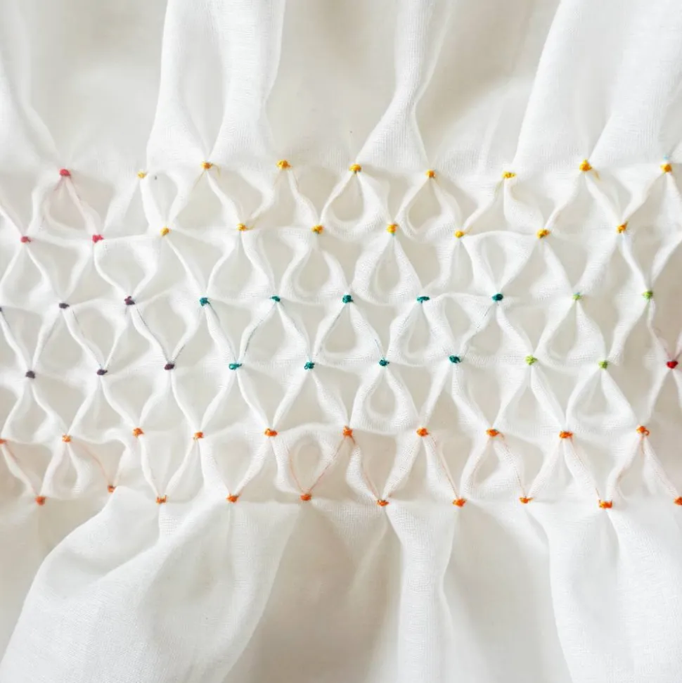 Smock mit farbigem Garn – kleine Farbpunkte. Jedes Tuch ist etwas anders – ein Unikat in Serie.