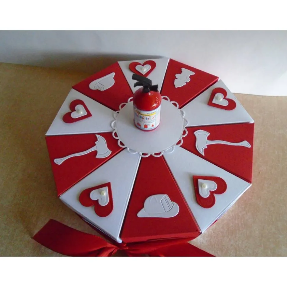 Hier seht ihr eine schöne Hochzeitstorte Feuerwehr mit 10 stücken…diese Hochzeitstorte ist als Geldgeschenk,give aways geeignet..