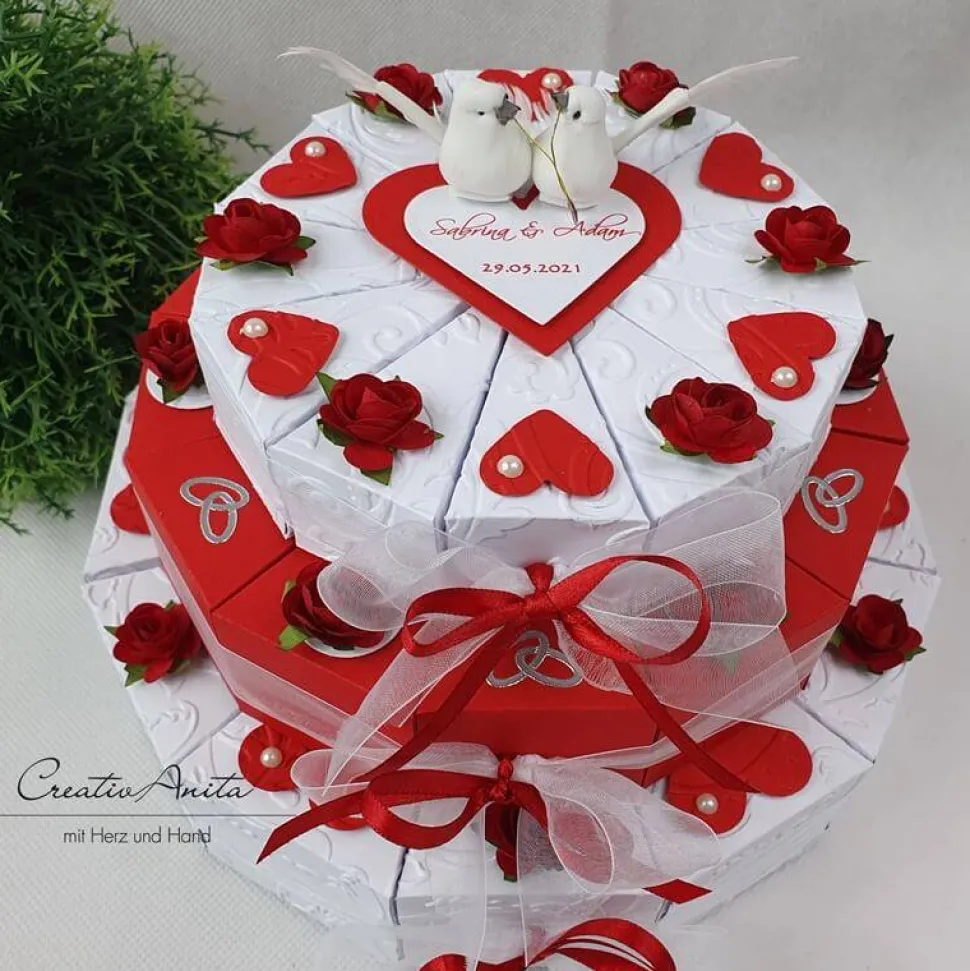 3×12 einzelne Tortenstücke, jedes einzeln nach Belieben befüllbar (z. B. mit Geld, Gutschein, Hochzeitsmandeln, Sprüchen, Süssigkeiten usw.)