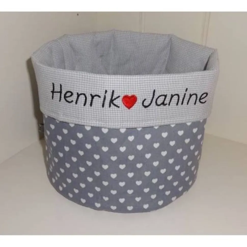 Gerne kann auch das Hochzeitsdatum oder ein Kindername aufgestickt werden (3 Euro Aufpreis).