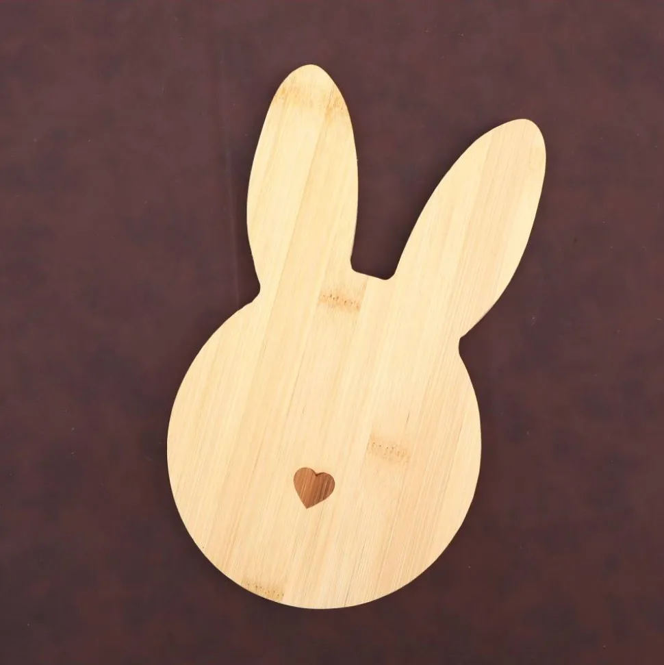 Süßes Holz Brett in Form eines Hasenkopfes aus Bambusholz gefertigt, für 1000 und eine Dekoidee.