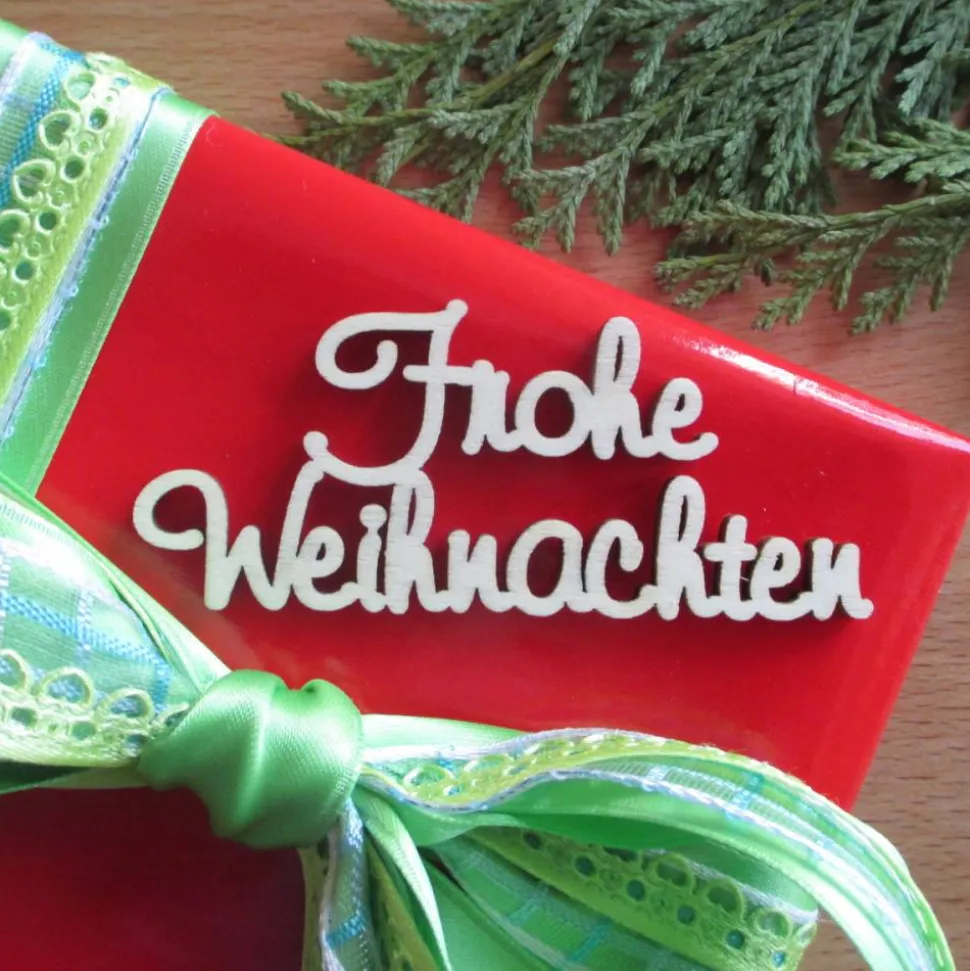 Der kleine Holz-Schriftzug ist ein echter Hingucker auf Geschenken, ideal auch als kleines Highlight auf dem Adventskranz oder die kleine Besonderheit auf dem Tischläufer des Festtagstisches…