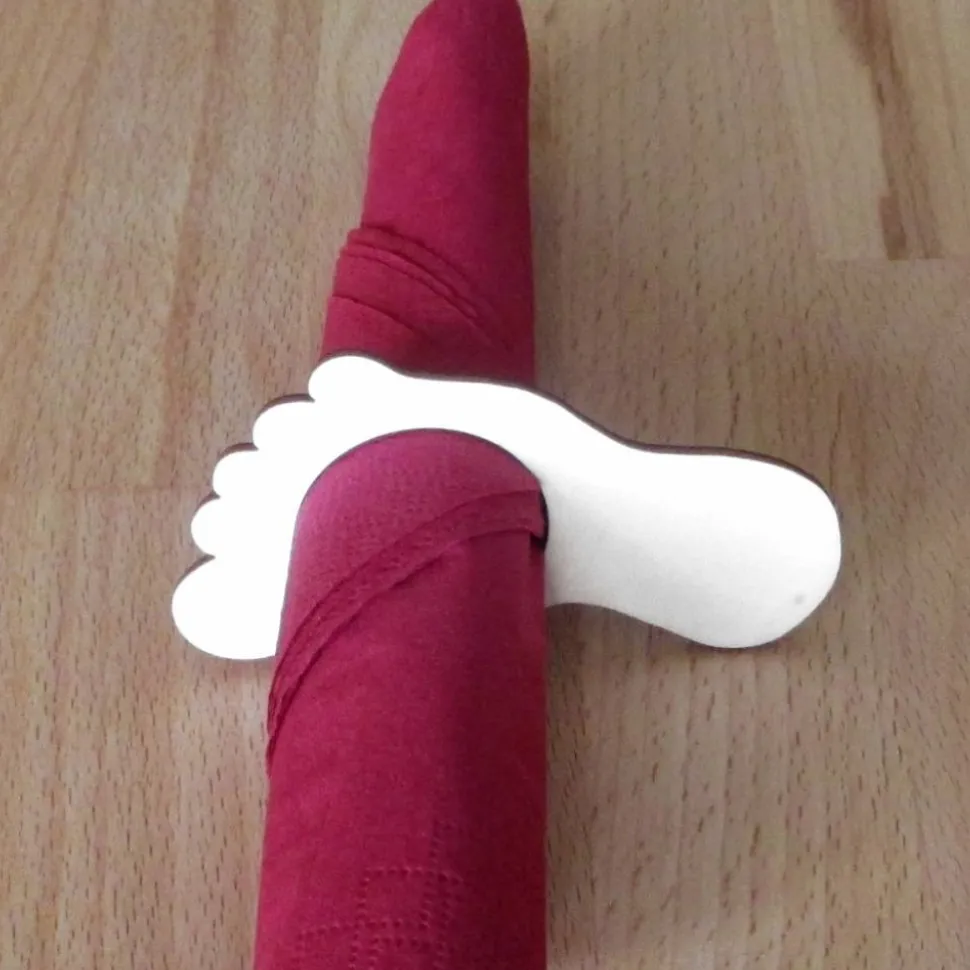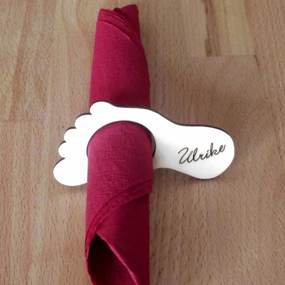Mit diesem Holz-Serviettenring verzaubern Sie die Gäste auf Ihrer Tauffeier. Ebenso kann der Serviettenring beschriftet als Platzkärtchen verwendet werden. Das Holz-Füßchen ist 9 cm lang und hat ein 3,5 cm breites Loch, so dass es für handelsübliche Servietten bestens geeignet ist.